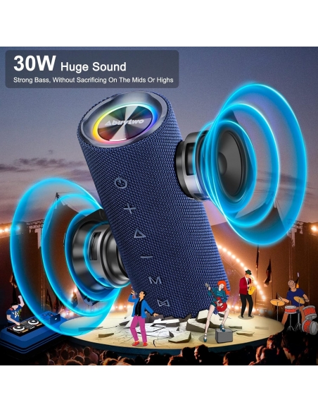 - 【Suono potente da 30 W】 Rispetto ad altri altoparlanti wireless che sacrificano la qualità del suono per un suono più potente, l'altoparlante Bluetooth portatile Abuytwo ha un driver da 37 W, un processore di segnale digitale avanzato e doppi radiatori passivi. Riesce a suonare in modo più bilanciato rispetto a molti altri, con bassi più potenti, più volume e una migliore chiarezza, senza sacrificare i medi o gli alti.