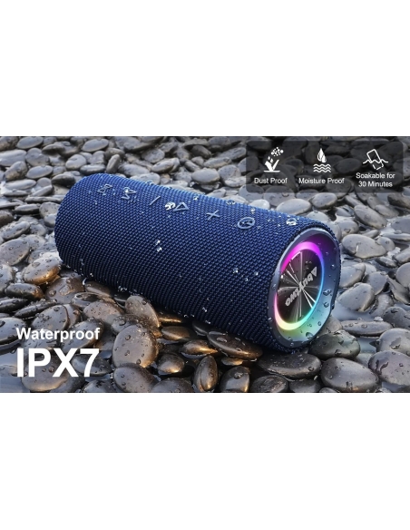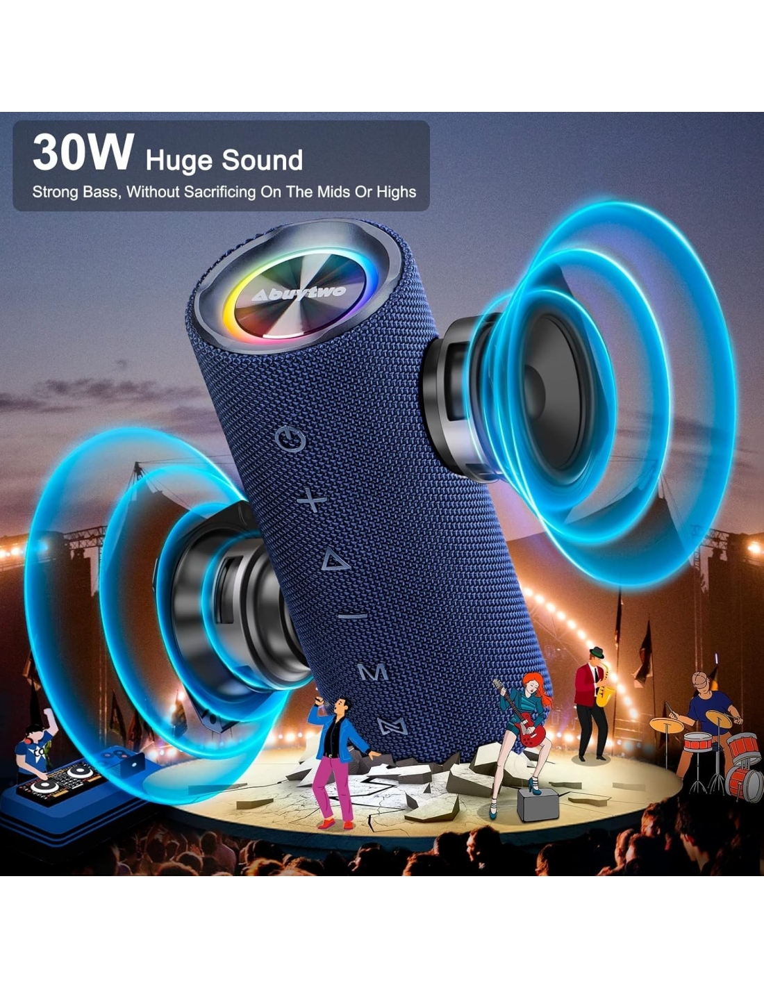 ABUYTWO A3102 Altoparlante Bluetooth IPX7 impermeabile, altoparlanti wireless ad alto volume da 30 W con suono HD, altoparlante LED RGB per doccia, doppio accoppiamento, riproduzione 24 ore, altoparlanti stereo wireless da viaggio per casa, kayak, spiaggia (blu scuro)