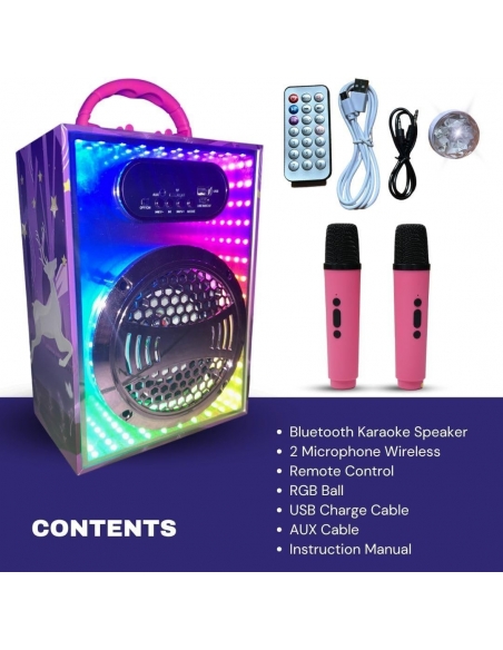 - 🎤 KARAOKE CON MICROFONO PER BAMBINI WIRELESS 🎤 Questo altoparlante karaoke con microfono bambini include 2 microfoni wireless, che consentono a due piccoli artisti di cantare insieme. Il karaoke bambini favorisce il divertimento e lo sviluppo delle capacità musicali dei più piccoli.