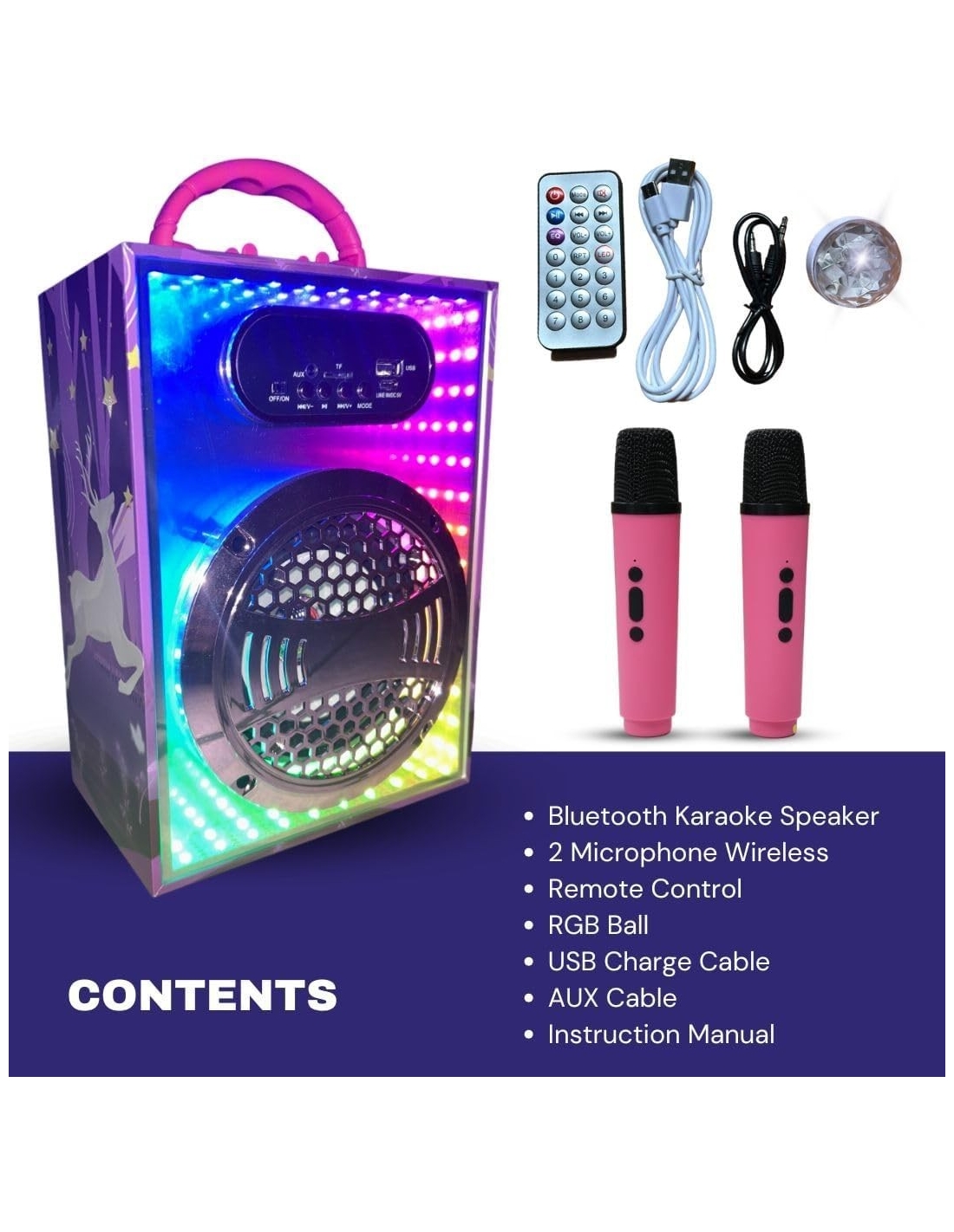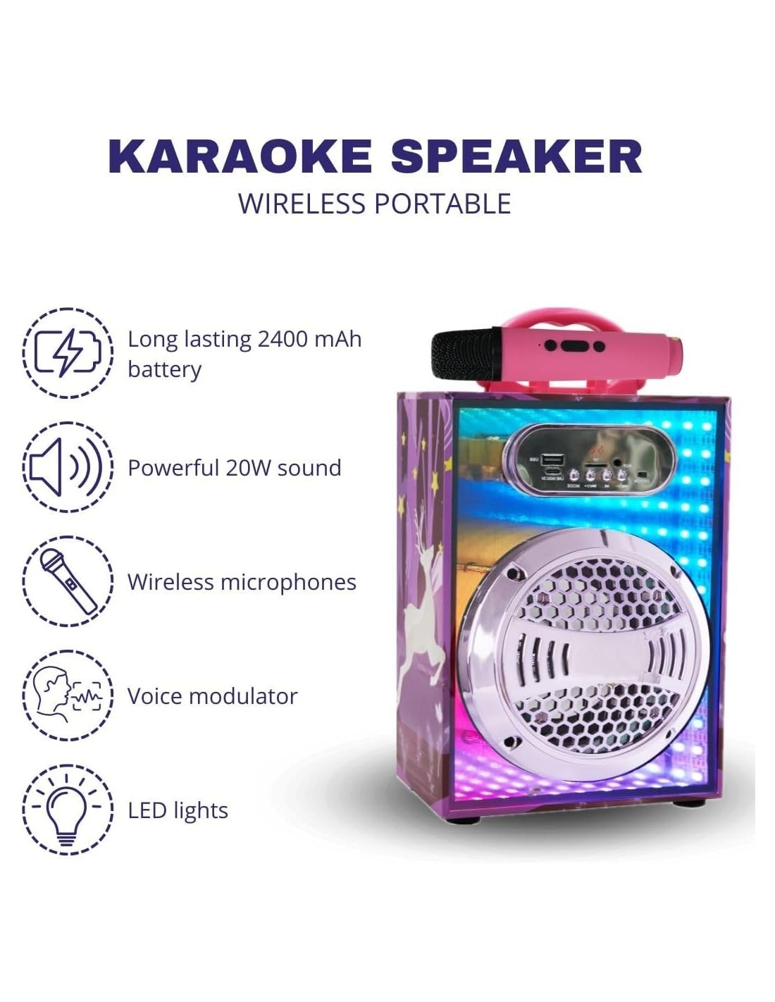 Karaoke ST46 Per Bambini 2 Microfoni Wireless - Cassa Bluetooth bambini Canta Tu Karaoke Bambini | Karaoke Con Microfono Bambina | Luce USB | Lettore USB e SD | Radio FM | Modulatore Di Voce | 20W