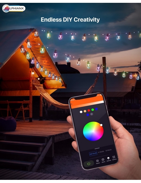 - Brillantezza esterna personalizzata: personalizza l'atmosfera esterna a tuo piacimento impostando ogni lampadina LED su un colore diverso, trasformando il tuo patio in un'accattivante tela di colori. Esalta il tuo arredamento esterno e assicurati che si distingua durante eventi e celebrazioni speciali.