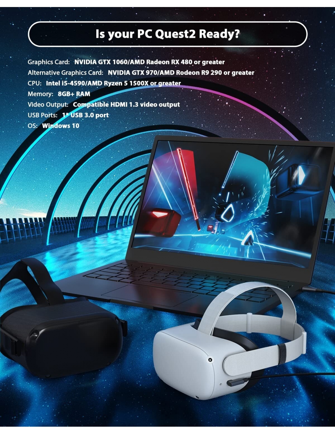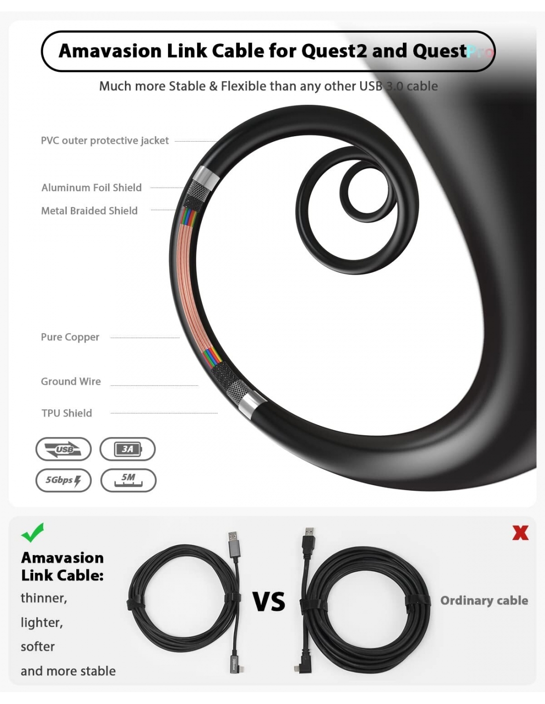 - Amavasion Il cavo di collegamento più leggero e sottile con bassa latenza e minima perdita di segnale. Il collegamento collega i giochi VR al PC in modo da poter giocare a un'ampia gamma di giochi e app per visori VR, allo stesso tempo puoi caricare il visore VR.