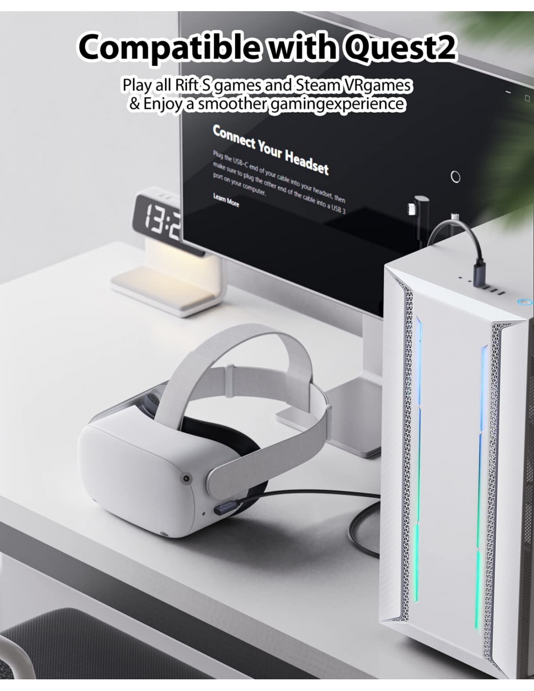 - Angolo di estremità di 90 gradi: USB C estremità ad angolo di 90 gradi per cuffie VR non sporgenti e facili da usare. È più comodo e più comodo giocare, guardare video.