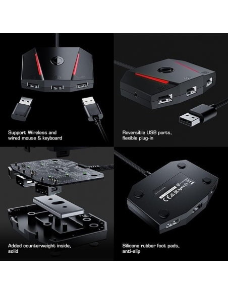 - [Jack da 3,5 mm] Questo convertitore da gioco e tastiera presenta un jack audio da 3,5 mm, che consente di ascoltare ogni movimento sottile e comunicare con i tuoi compagni di squadra.
