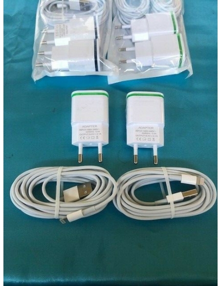 Kit nr.2 Caricatori USB 2.1A 5V 2 Porte + nr.2 cavi 3m iPhone Android