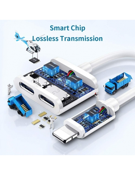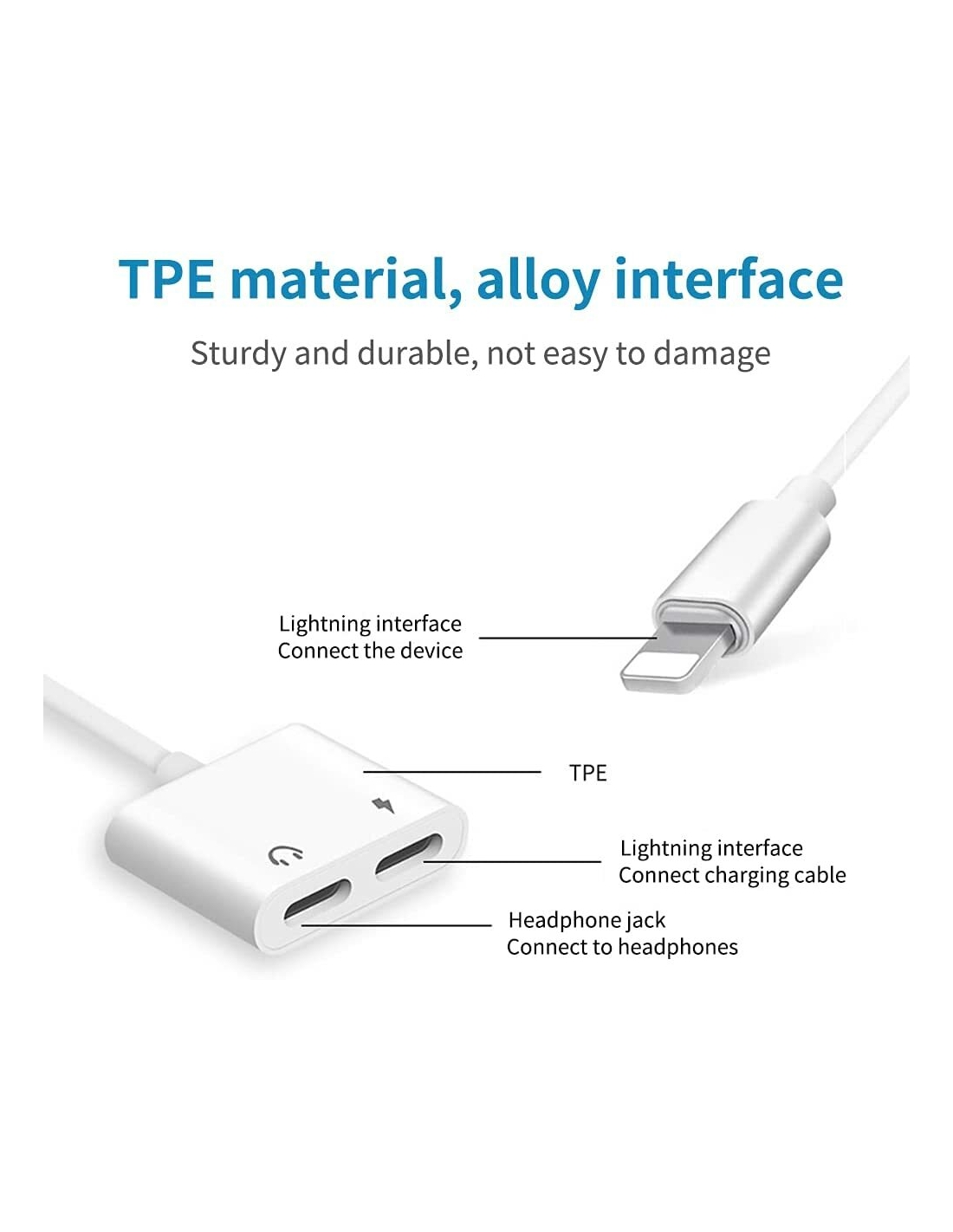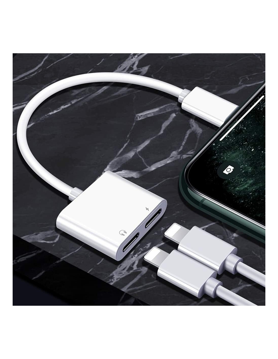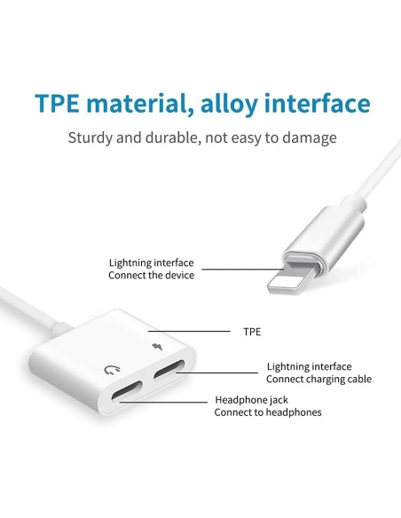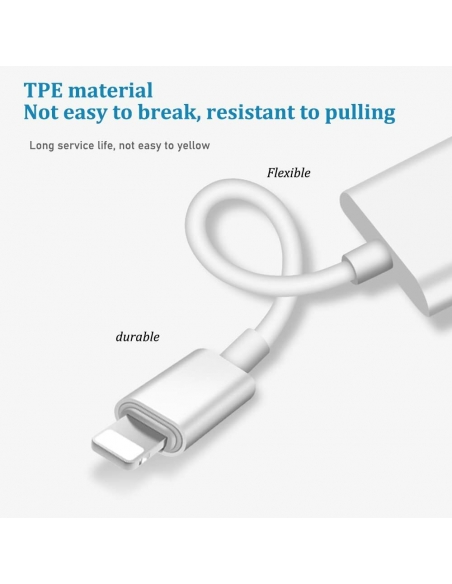 - Splitter per cavo di ricarica 2 in 1 con porta per cuffie audio + porta per caricabatterie. Supporta l'ascolto della musica durante la ricarica.