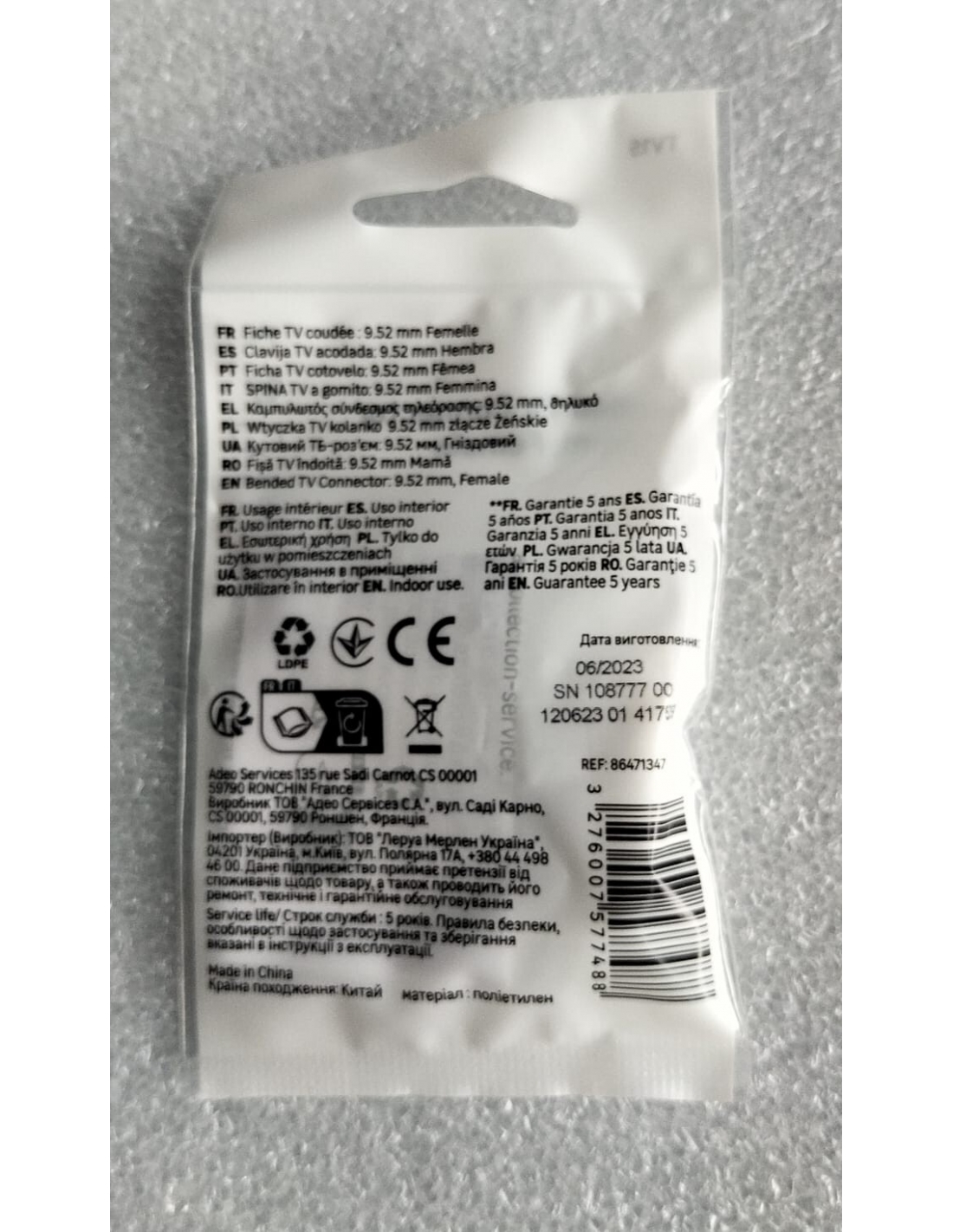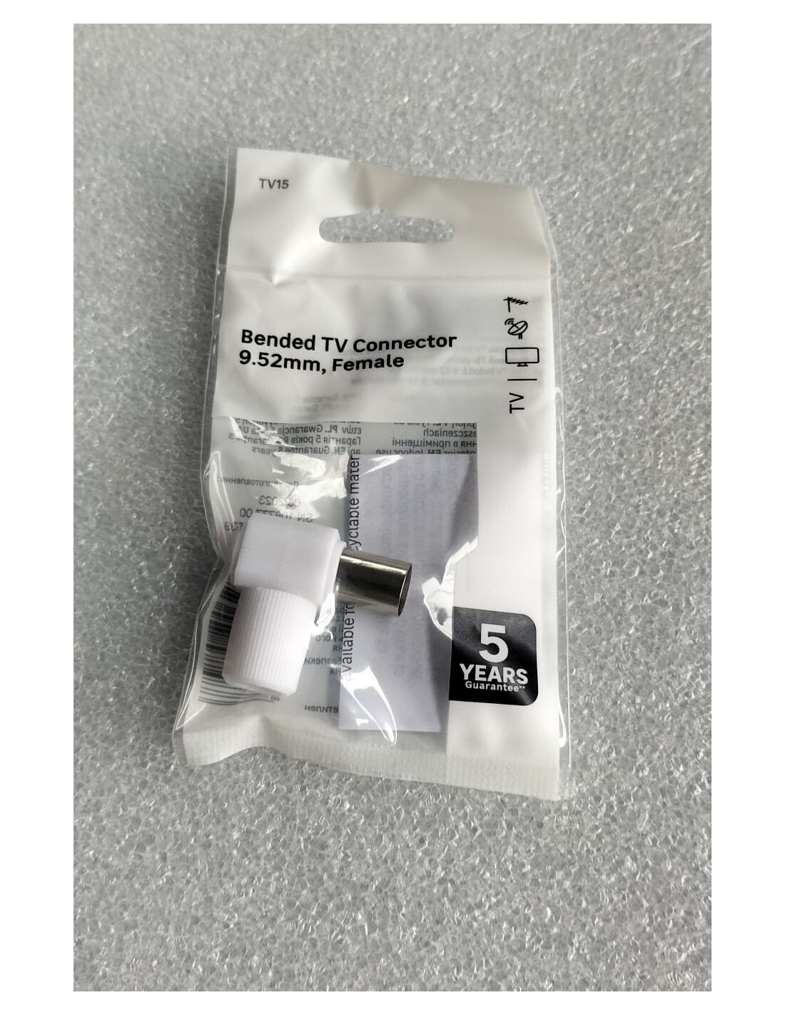 Lexman TV5 Connettore TV Femmina a gomito in plastica Coassiale 9,52 mm Spina TV Antenna PZ.5