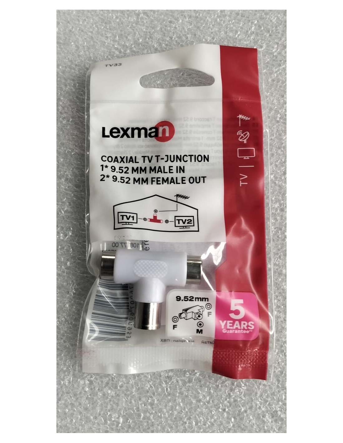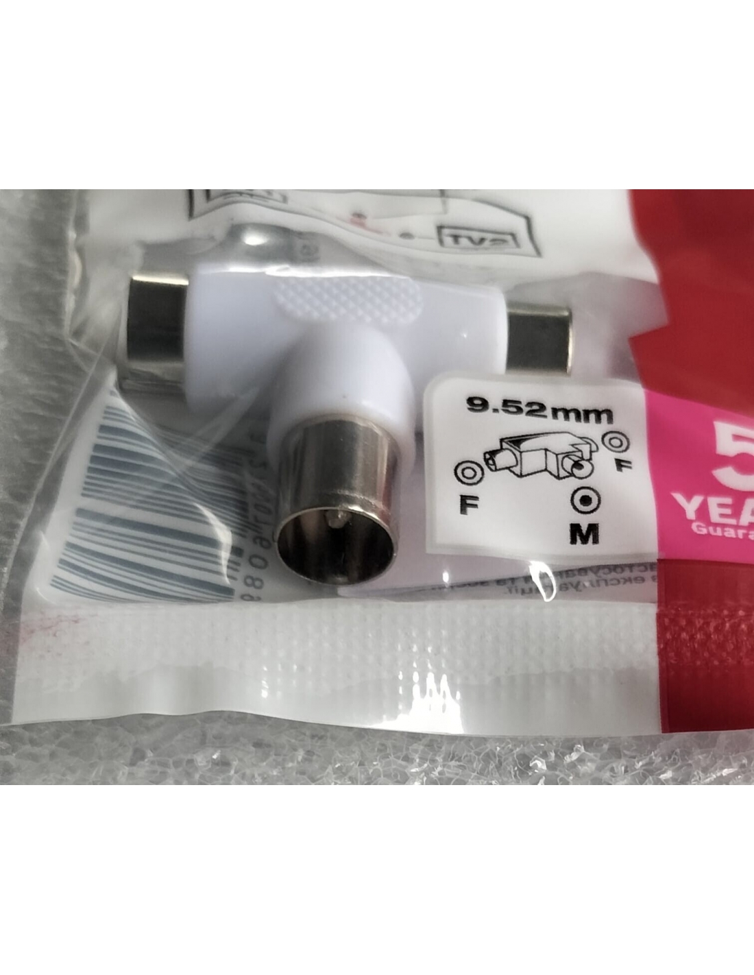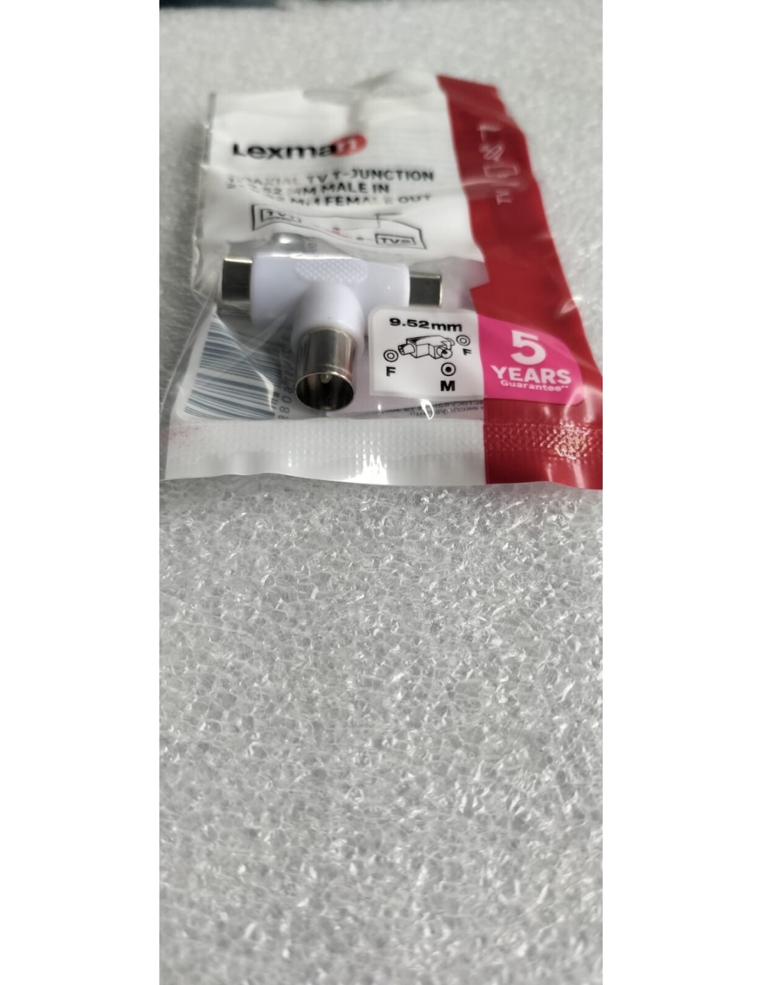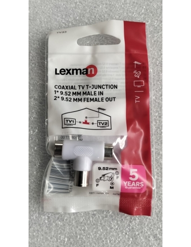 Lexman Connettore TV Coassiale a T 1xMaschio 9,52mm IN 2xFemmina 9,52mm OUT Giunto PZ.5