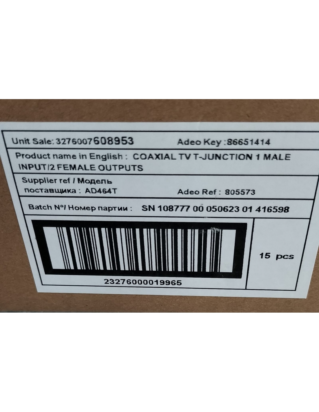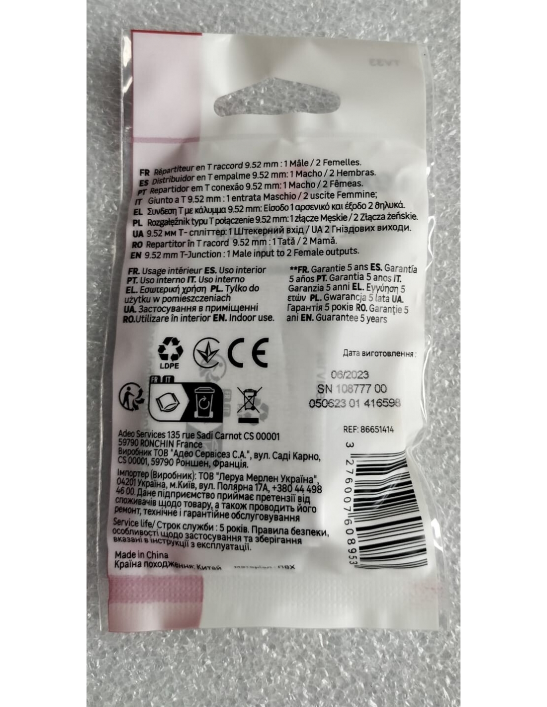 Lexman Connettore TV Coassiale a T 1xMaschio 9,52mm IN 2xFemmina 9,52mm OUT PZ.5