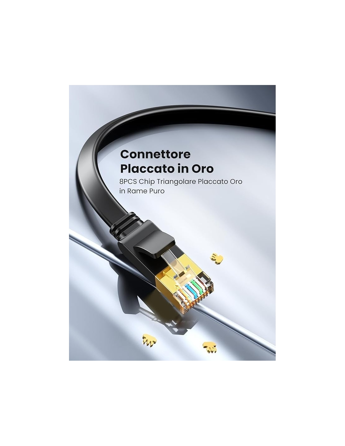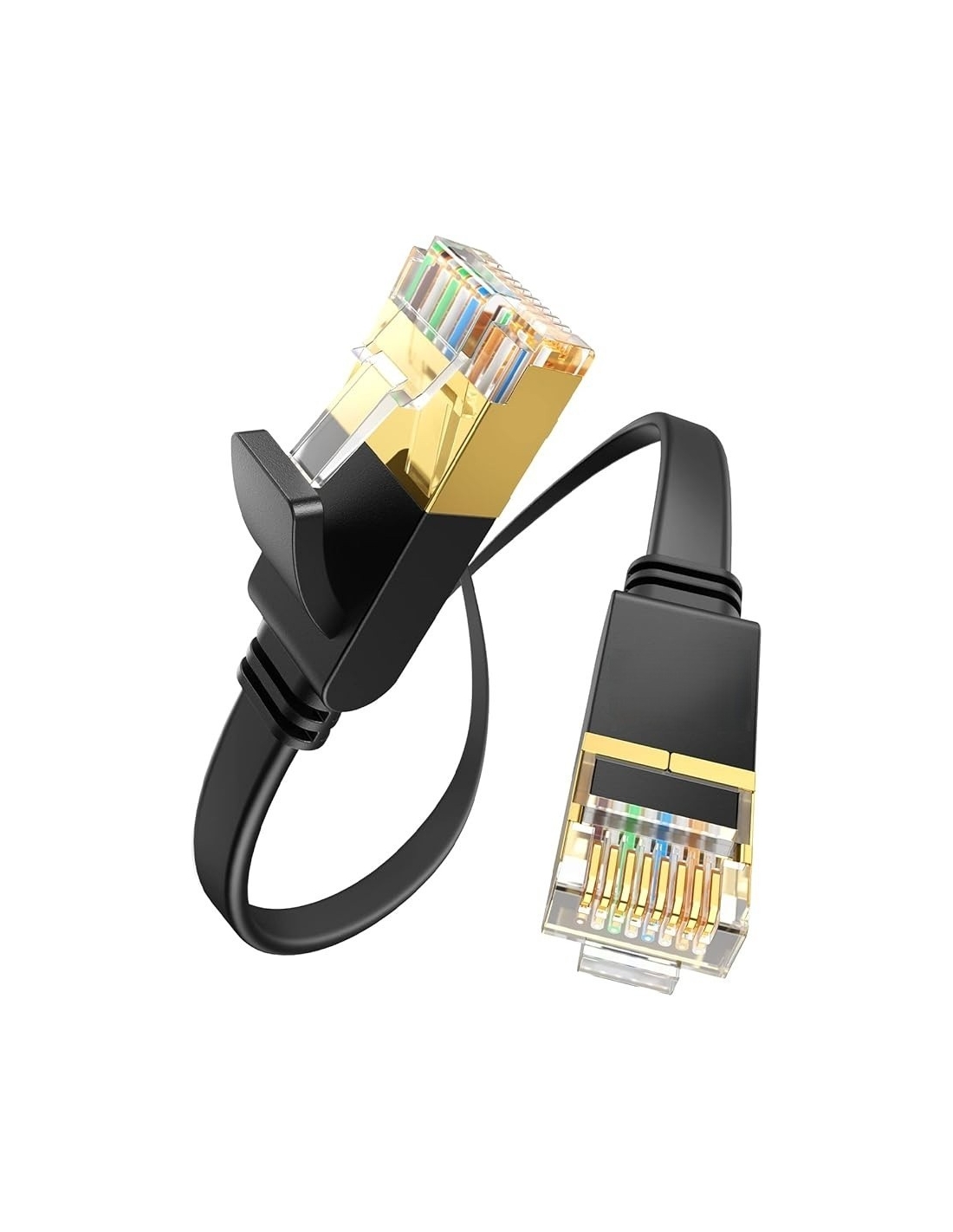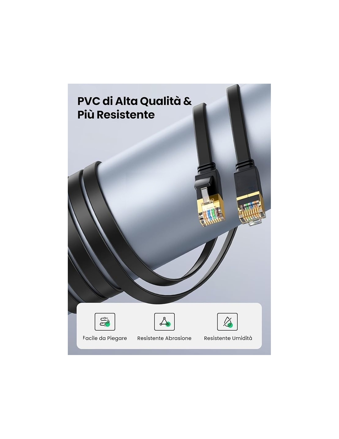 - [ Materiale PVC Morbido e Flessibile ] cavo ethernet piatto Cat 7 fatto di materiale PVC, è leggero, resistente all'usura ed allo strappo, molto durevole. E il design piatto con solo 2.1mm di spessore, lo rende più flessibile e pieghevole. Forniamo due guaine di antipolvere per due connettori RJ45, è una protezione intima per proteggerli contro la rottura e il polvere.