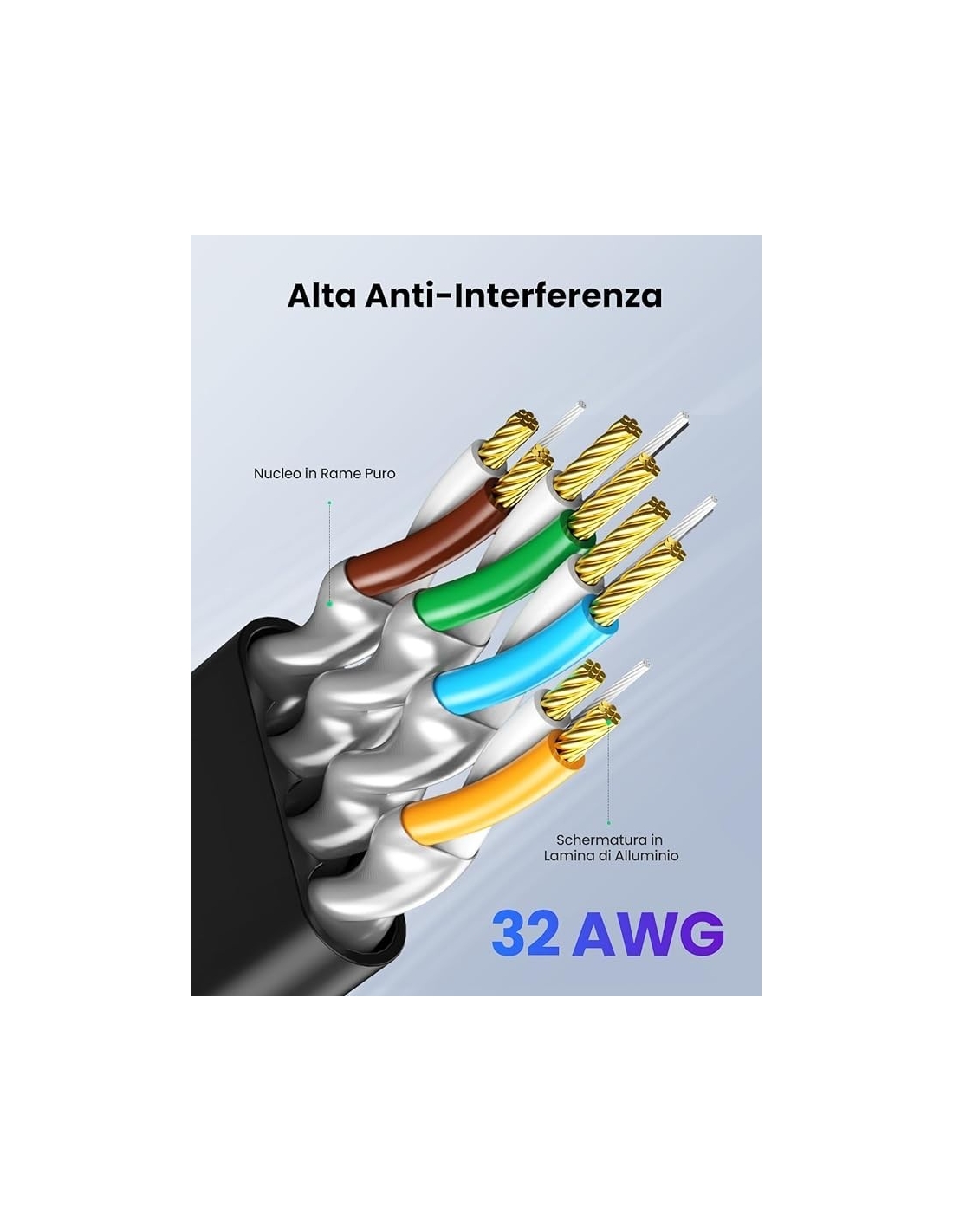 - [ Trasmissione del Segnale Più Stabile ] Cavo enthernet schermato è formato da 4 paia di fili di rame intrecciati e segregati dalla croce, il che protegge le fibre di rame dalla radio e dalle interferenze elettromagnetiche. Connettori RJ45 fatti in rame puro sono placcati in oro, sono molto resistente all'ossidazione e non verrà danneggiato dopo un uso prolungato, ed anche garantiscono la conduttività e stabilità di trasmissione del segnale di rete.