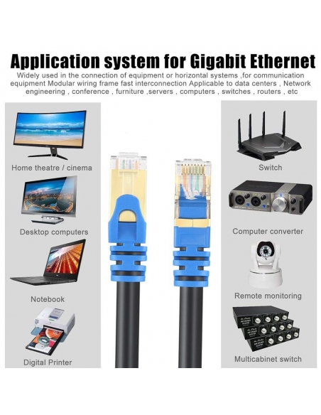 - Cat7 Patch di rete per esterni supporta la trasmissione di dati da 10 Gbps, larghezza di banda fino a 600 MHz. Conforme a ANSI/TIA/EIA-568-B. 2-10, 10Base-T, 100Base-TX (Fast Ethernet), 1000Base-T/1000Base-TX (Gigabit Ethernet) e 10GBase-T (Ethernet a 10 gigabit) ad alta velocità, anche compatibili con Cat5/Cat5e/Cat6/Cat6/ Cavo Internet CAT6A.