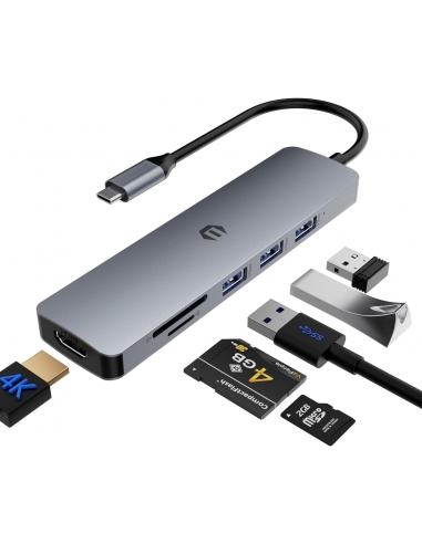6-in-1 Docking Station HUB USB C, USB X 3 SD e TF HDMI