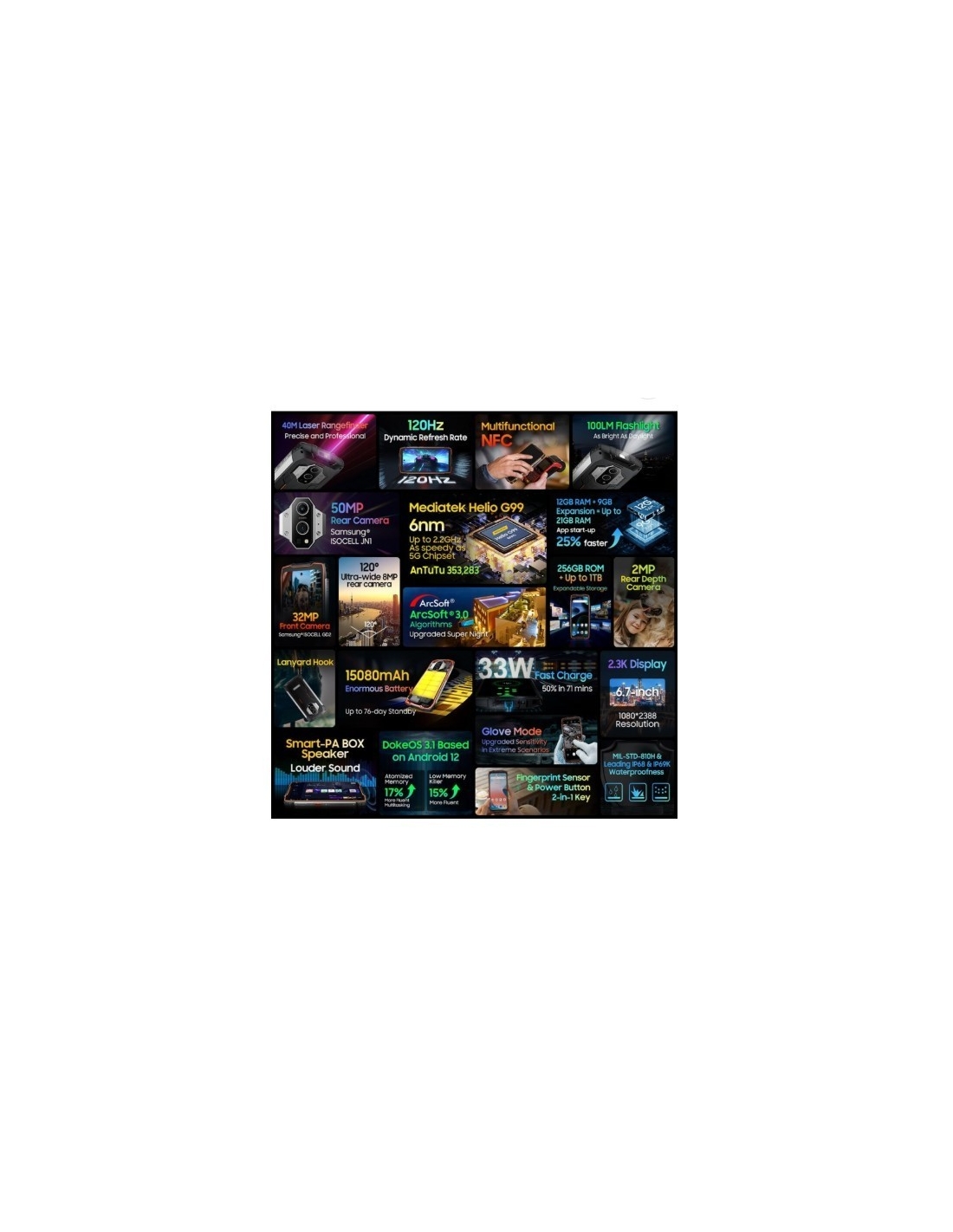 Blackview BV9300 Smartphone robusto 12 GB di RAM 256 GB di ROM 6,7'' FHD 120 Hz