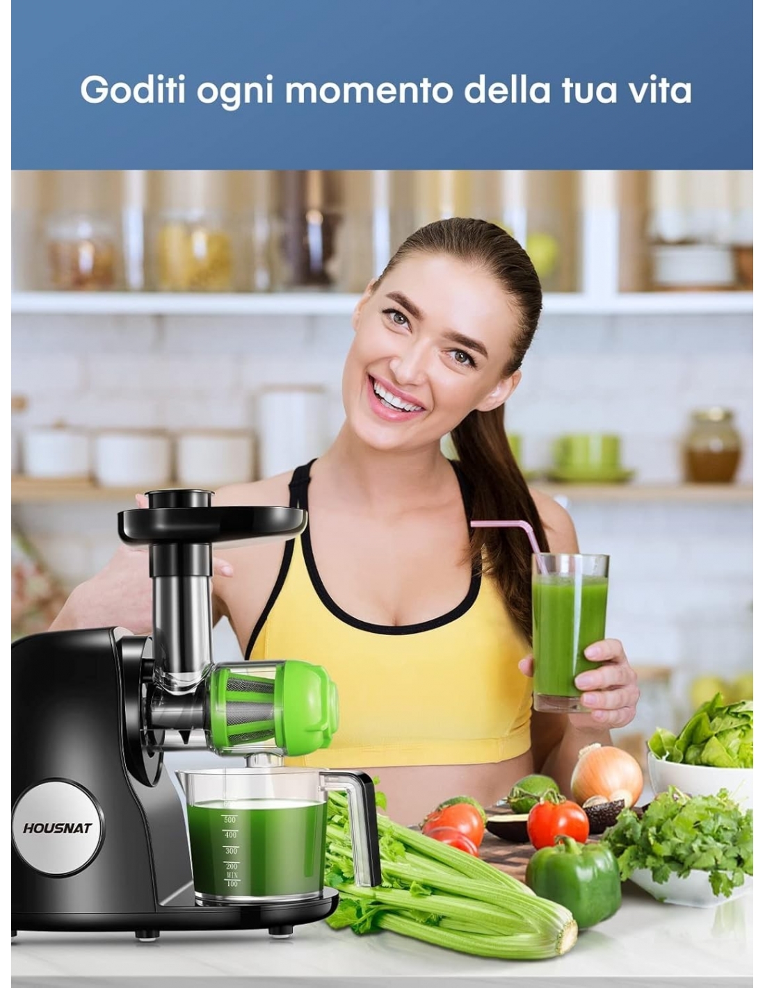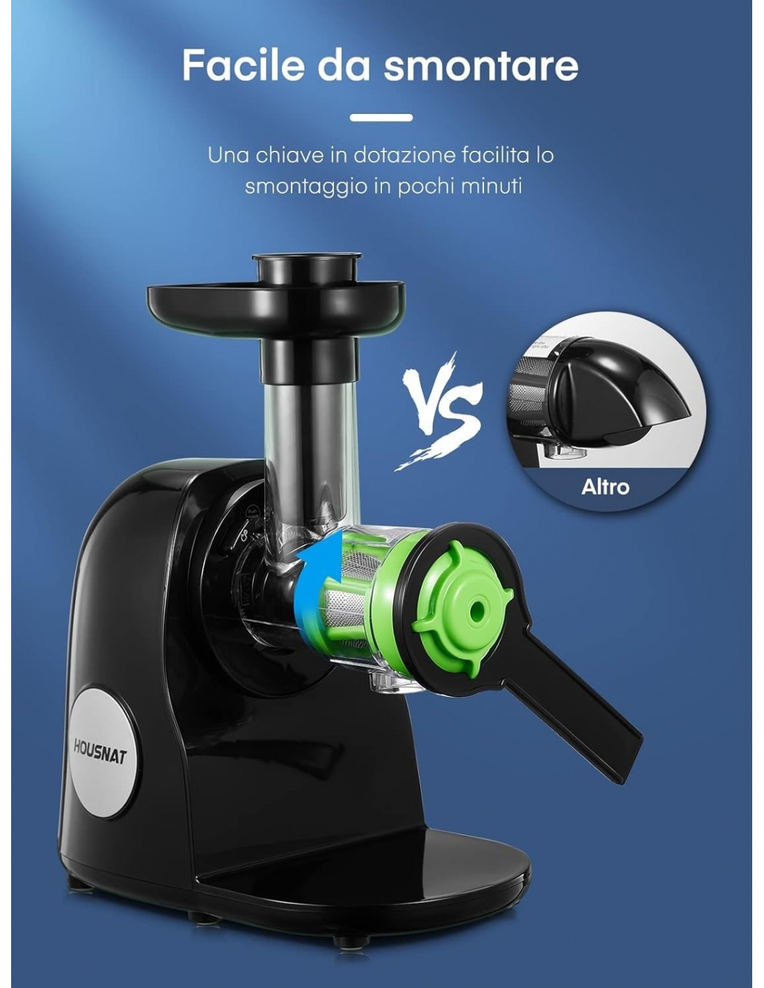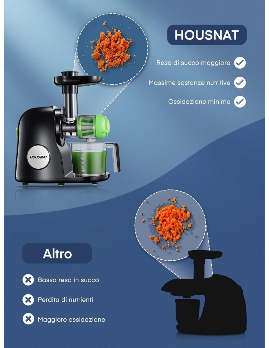 Housnat Estrattore Frutta e Verdura, Succo a Freddo con Motore Silenzioso