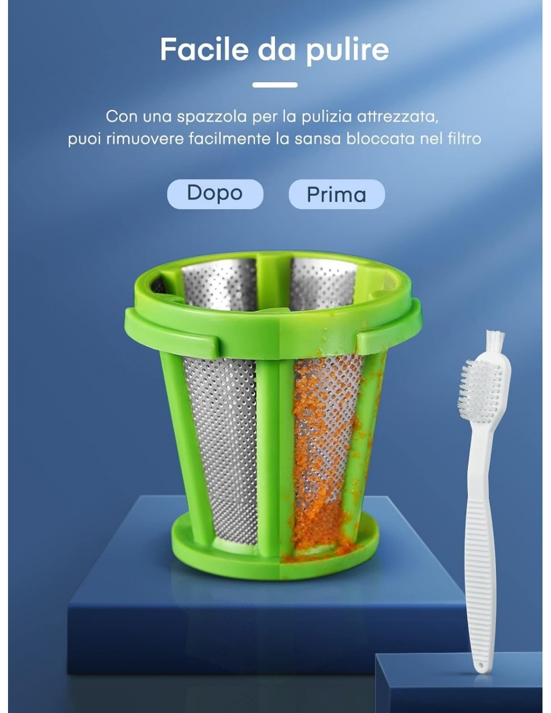 - 🥬【Facile da smontare e pulire】 Il nostro estrattore di succo presenta un design di blocco che può essere facilmente assemblato e smontato, mentre la funzione di invertire impedisce l'occlusione e semplifica la pulizia. Le parti possono essere pulite con la spazzola inclusa o in sicurezza in lavastoviglie.