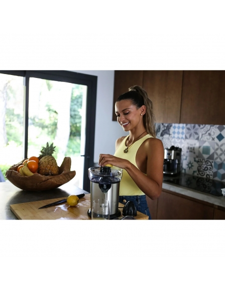 Inizia la giornata con una nuova carica di vitamine! Con KOENIC KCP 13021 M tutto diventa più semplice. Basta posizionare un agrume tagliato a metà sul cono di spremitura, premere leggermente e la rotazione inizia automaticamente. Grazie ai suoi 130 watt di potenza , estrae ogni goccia di succo in modo efficiente e rapido, mentre tu puoi rilassarti. I due coni di spremitura di diverse dimensioni si adattano perfettamente a frutti di qualsiasi dimensione, dai lime ai pompelmi di grandi dimensioni.