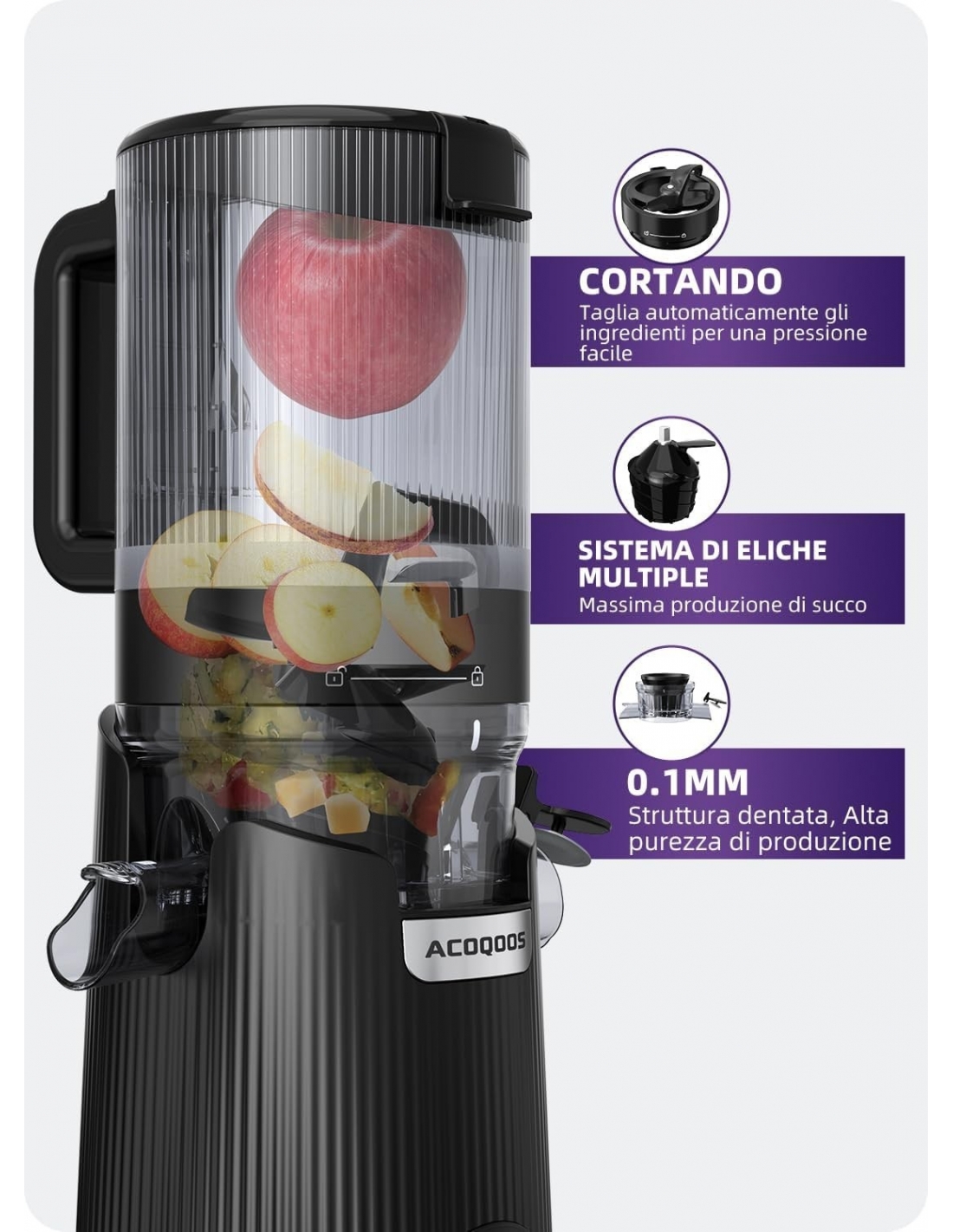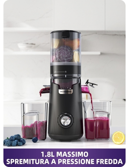 - 【Packaging Eco-Friendly + Garanzia Trasparente】Garanzia ACOQOOS 1 anno con sostituzione gratuita. Confezione minimalista in carta kraft riciclata, ideale per chi ama uno stile di vita sostenibile. Include: spazzola per pulizia, 1 bicchiere per succo da 1L e 1 contenitore per scarti inclusi. Perfetta come regalo per occasioni speciali (Natale, compleanni, housewarming) o per chi cerca praticità e rispetto per l'ambiente.