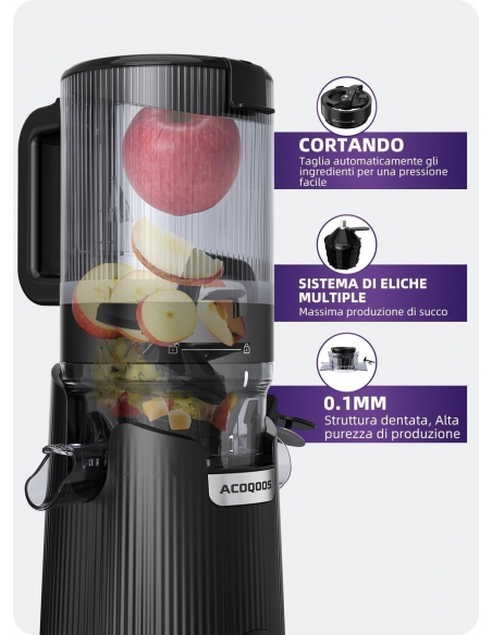 ACOQOOS Estrattore Frutta e Verdura Apertura Larga da 135mm Intera, 300W Centrifuga Lenta, 99% Nutrienti Preservati, BPA Free, Facile da Smontare e Pulire, Nero, 1.8L