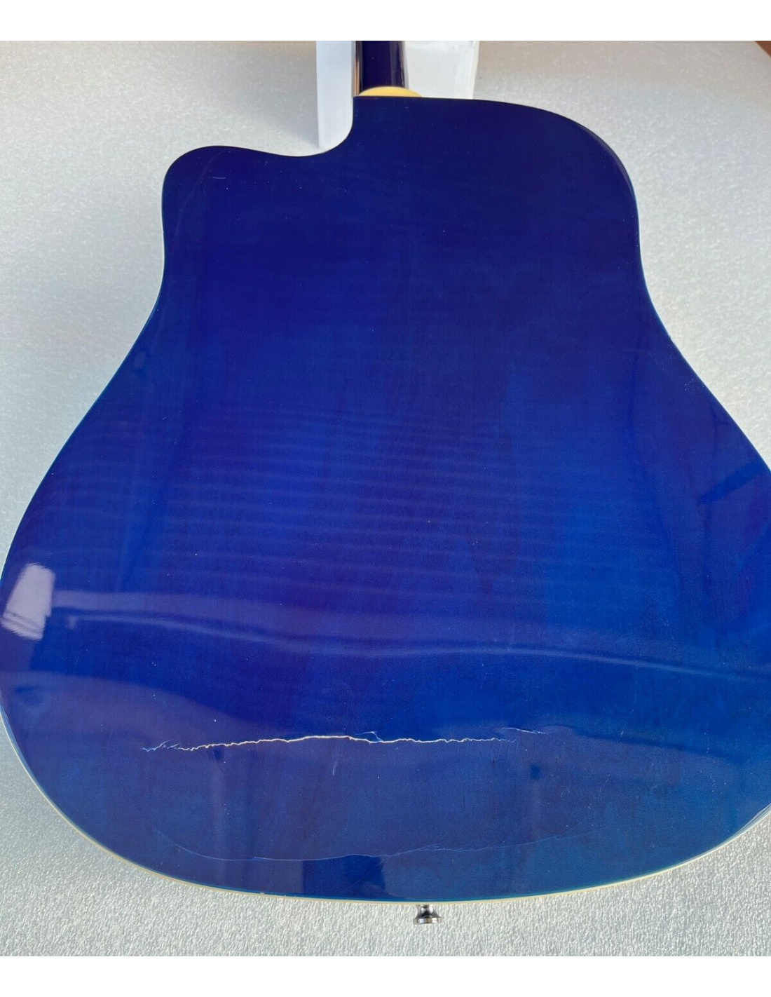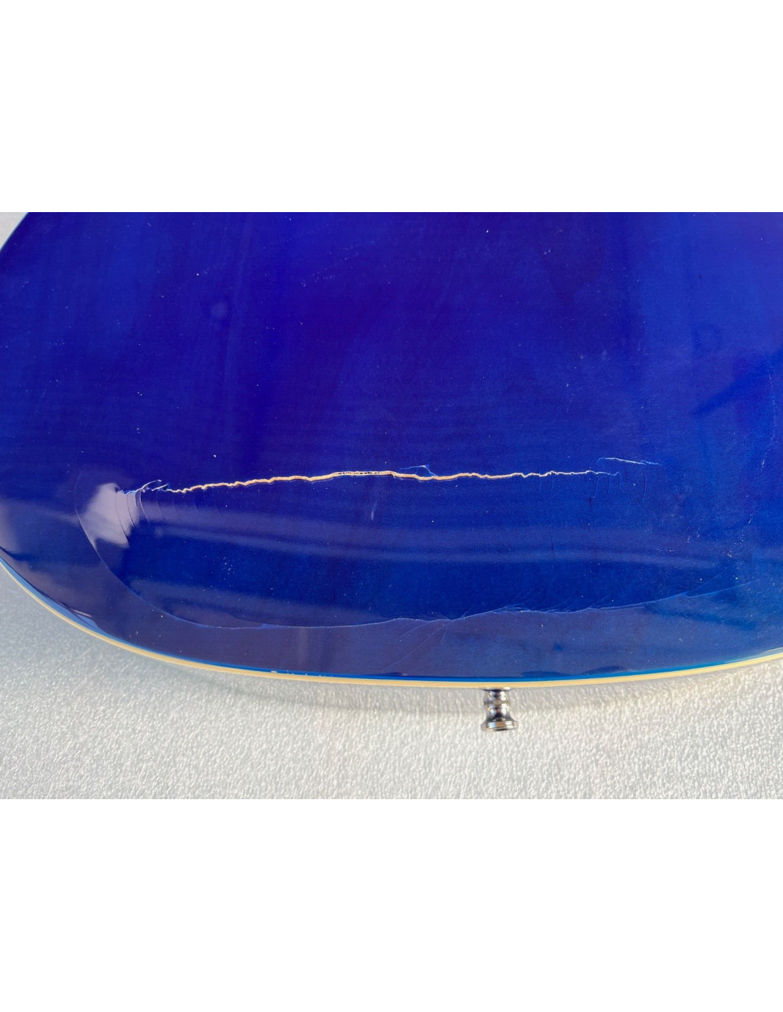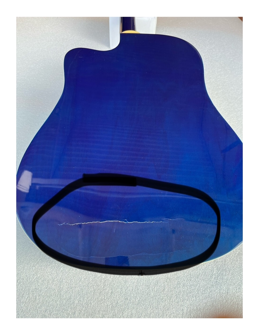 La chitarra ha una leggera spaccatura sul fondo e viene fornita anche con 2 accordatori come da foto reali del prodotto.