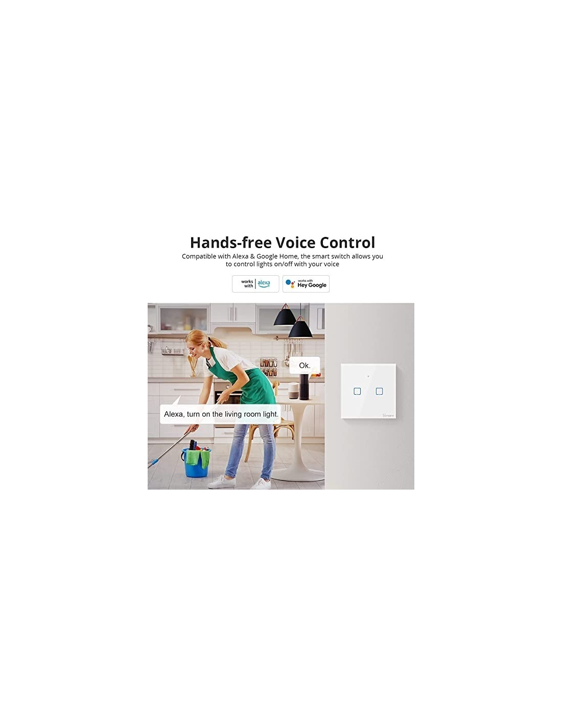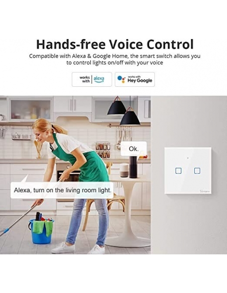 - 【Controllo Vocale Senza Mani】 L’interruttore WiFi SONOFF T2US2C è compatibile con Amazon Alexa (Amazon Echo/Echo Dot/Amazon Tap) e Google Home Assistant. Ti consente di utilizzare la tua voce per controllare comodamente i tuo dispositivi domestici senza mani