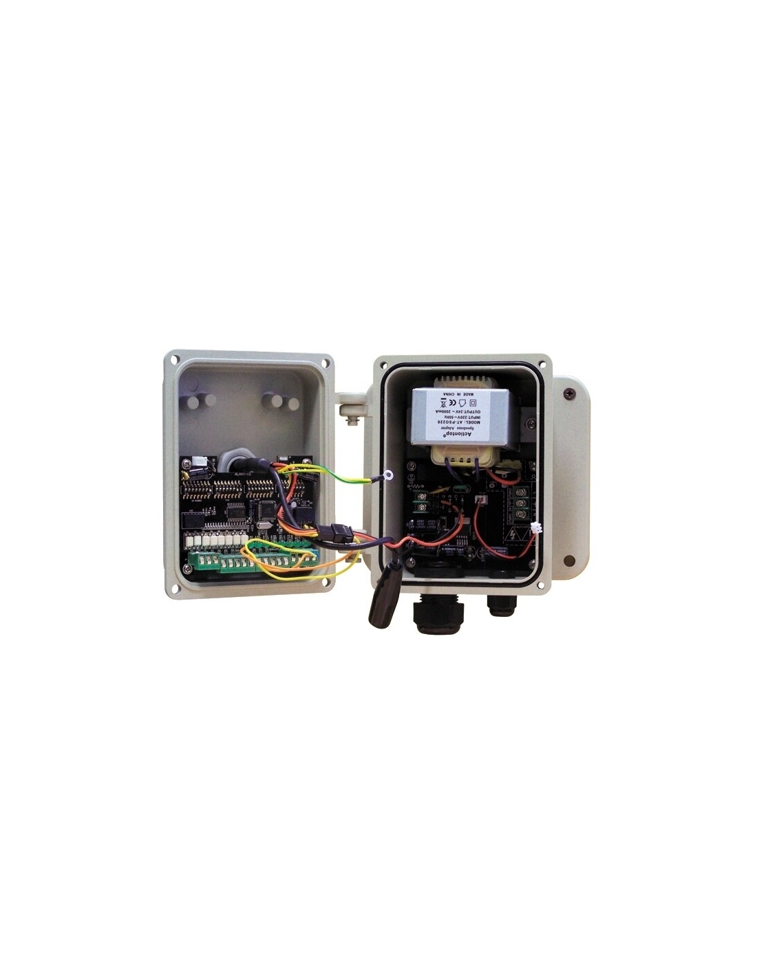 l Power Box è un’unità con grado di protezione IP66 che contiene:- alimentatore 230Vca uscita 24Vca- cavi di connessione ad innesto rapido per il collegamento con Thera 4,- scheda 8 In di allarme per la gestione del posizionamento preset e 2 Out per relè di allarme. La scheda è collegata con il modulo telecamera tramite connessione RS-485.