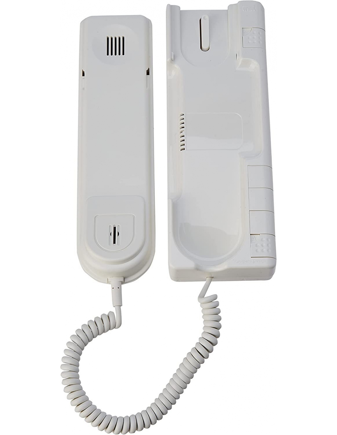 Adatto per l'aggiornamento su citofoni analogici Urmet . Compatibile con la maggior parte dei citofoni disponibili sul mercato. Può essere utilizzato per l'installazione in sistemi 4+n (audio a 5 fili) e 1+n sistemi (2 fili). Dotato di chiamata tradizionale con cicalino o chiamata elettronica su ricevitore microaltoparlante. Pulsante apriporta e pulsante aggiuntivo per servizi aggiuntivi -Non è possibile installare citofoni con ponticelli configurati per la suoneria elettronica in sistemi con cicalino e viceversa— Controllare la posizione del ponticello JPA se è configurato per il cicalino o lo squillo elettronico- Larsen, fischietto - Modificare il impostazione dei potenziometri MICROPHONE (MIC) e LOUDSPEAKER (SPK) —Nessuna apertura porta - Verificare i collegamenti, in particolare la presenza del ponticello tra i morsetti 6 e 10 della morsettiera della scheda madre (applicabile solo ai sistemi 4+ n)