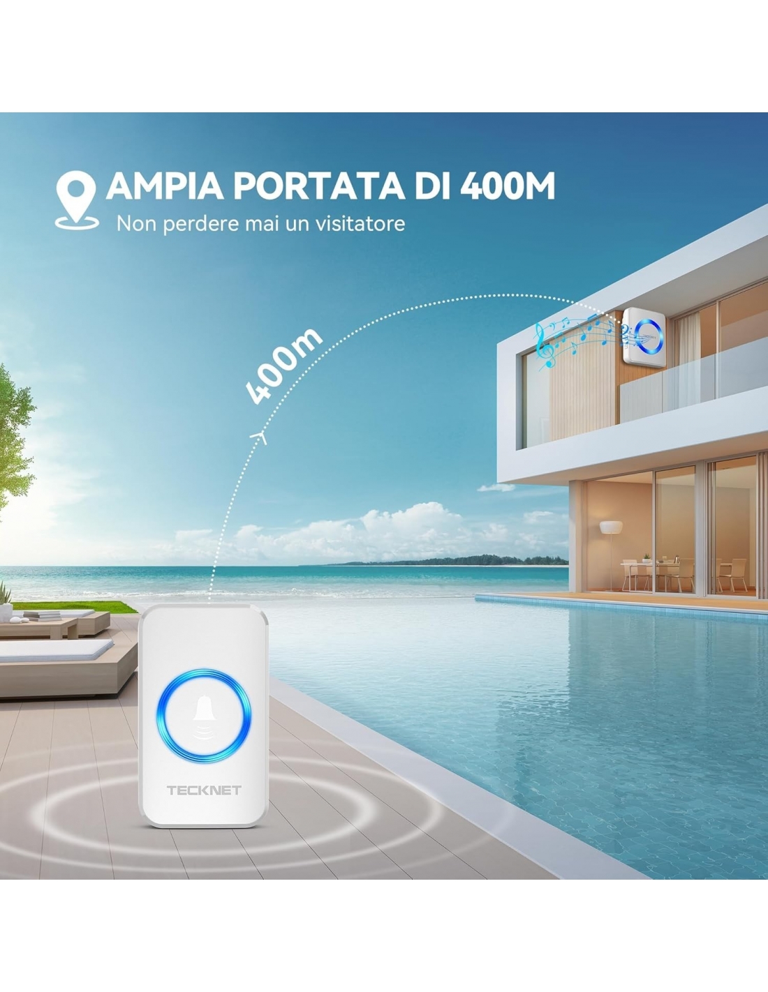 Tecknet Campanello Senza Fili Wireless Impermeabile da Esterno
