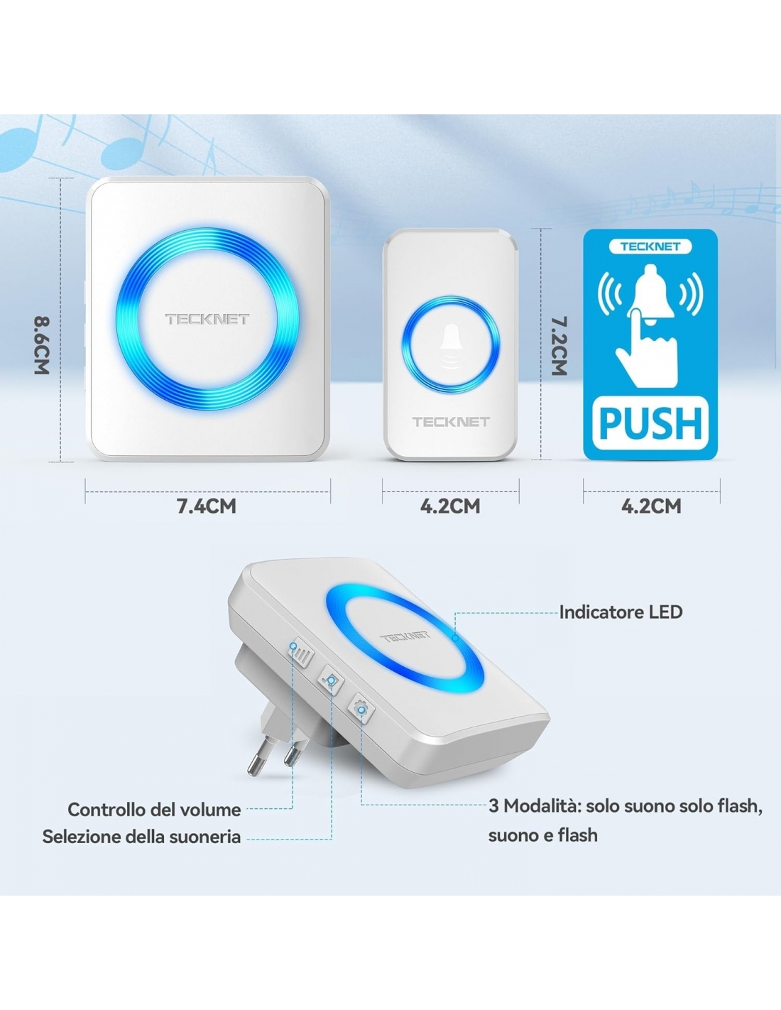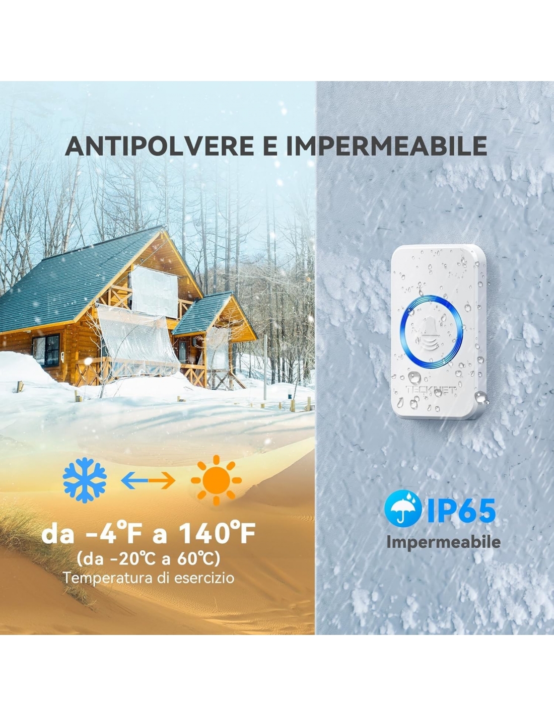 - [Durevole e con un eccellente servizio post-vendita] Il campanello senza fili da esterno impermeabile ha una durata di almeno 5 anni. In caso di problemi nell'utilizzo del prodotto, contattare il team di assistenza clienti TECKNET professional, usufruendo del supporto di 36 mesi di TECKNET (solo registrati)