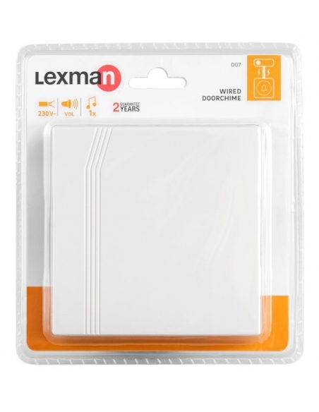 Il campanello Lexman è l'ideale per avvisare in modo sonoro dell'arrivo di qualcuno a casa. L'impianto funziona con alimentazione di rete 230 V a 2 fili. Da installare su pareti interne, ha un volume massimo di 80 dB e una portata di 200 m
