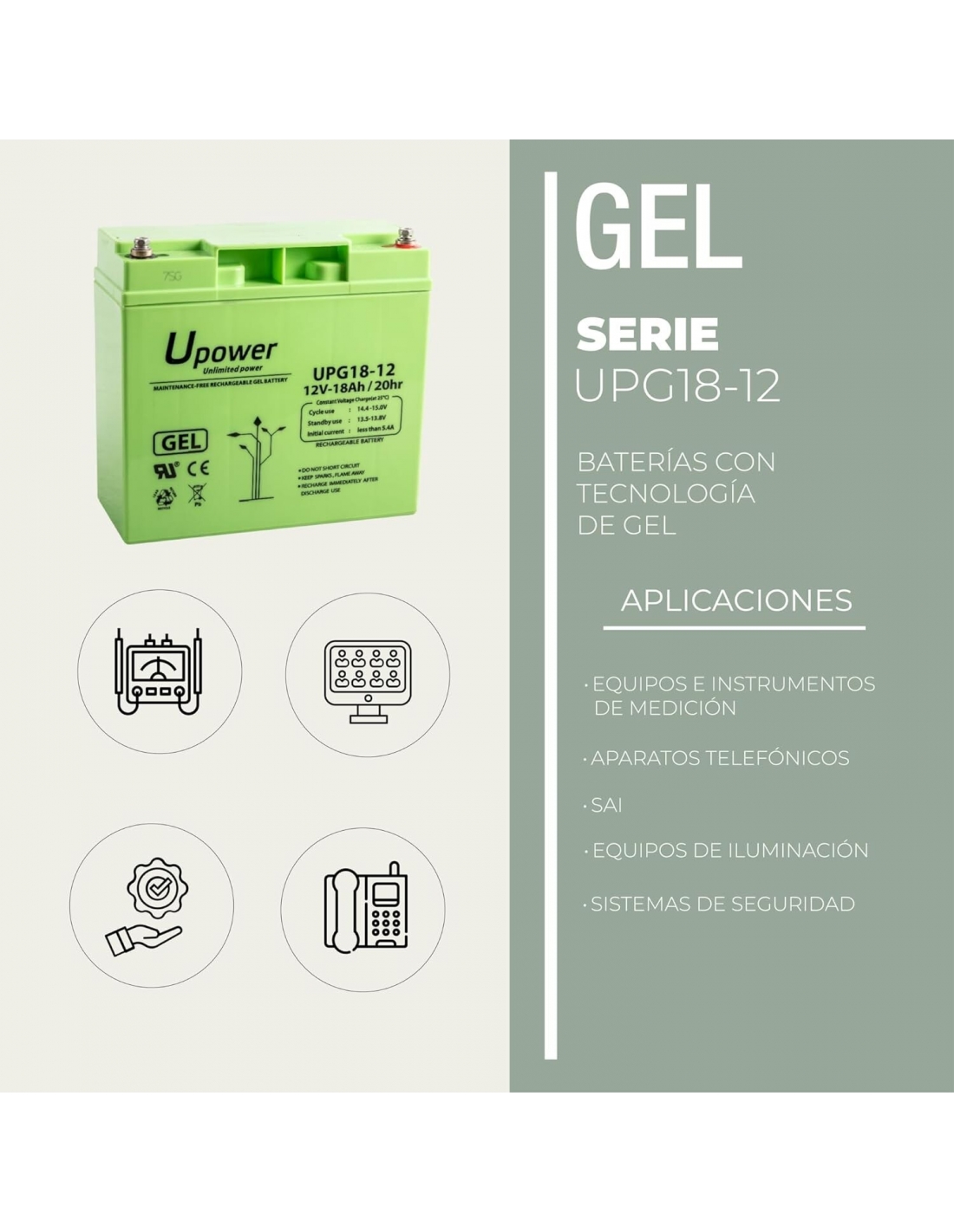 U-Power Batteria Piombo Gel UPG 18Ah 12V