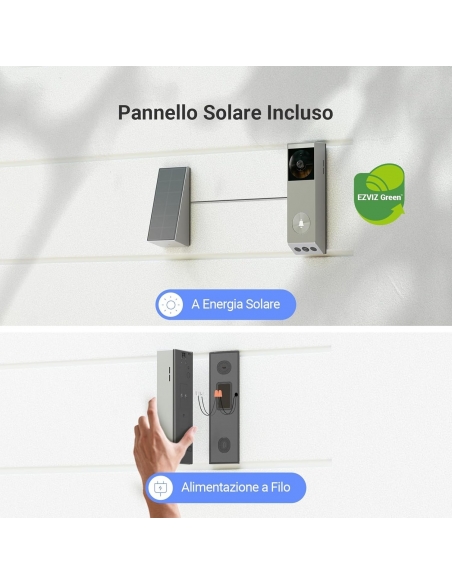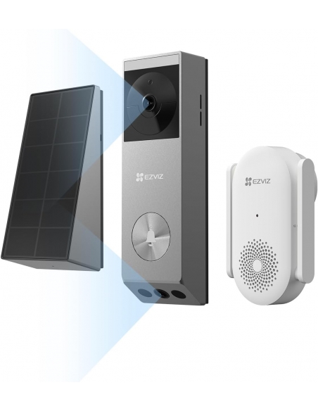 EZVIZ EP3x Video Campanello a Batteria con Suoneria CH1, Doppio Obiettivo, Rilevamento di Persone/Pacchi, Visione Notturna a Colori, Pannello Solare Incluso, Impermeabile, Alexa