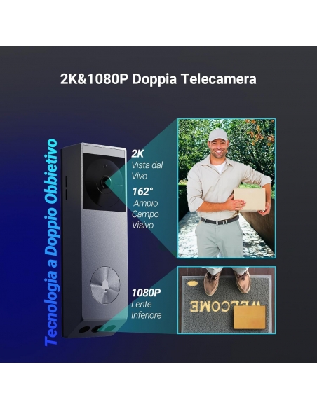 - 【Doppio Obiettivo 2K & Visione Notturna a Colori】L'EP3x Pro unisce le viste per aiutarvi a vedere molto di più. Il suo obiettivo 2K rivolto in avanti cattura le persone in avvicinamento e l'ambiente circostante in modo ampio e chiaro, mentre l'obiettivo 1080p rivolto verso il basso consente di controllare il terreno alla ricerca di pacchetti, dove altre telecamere di solito non riescono a vedere.