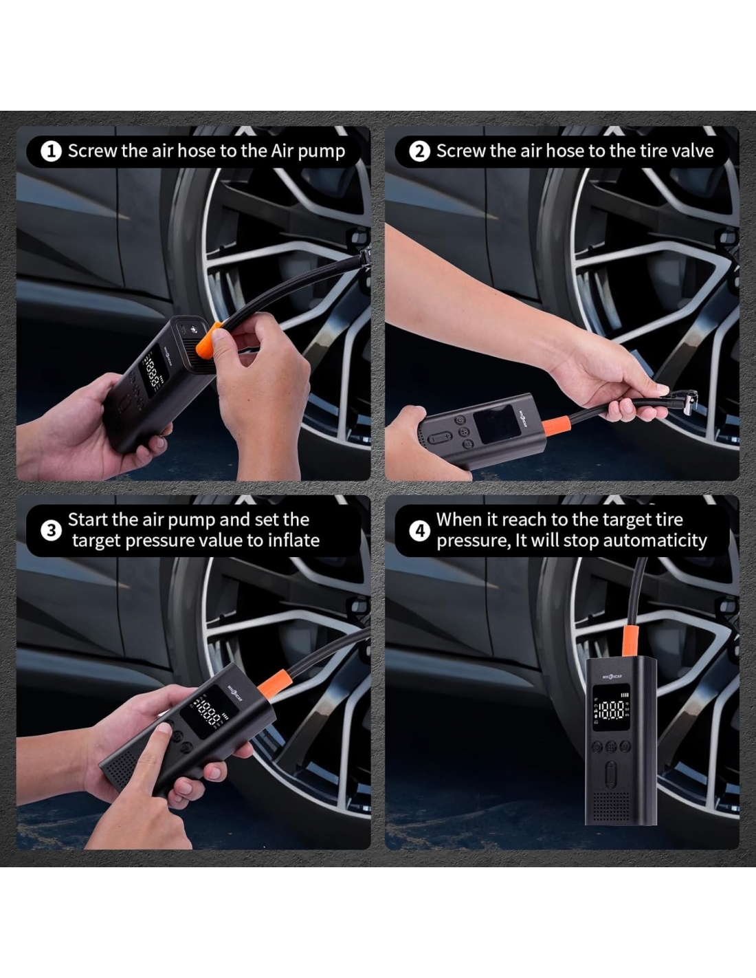 WHZOHCAR Mini Compressore Portatile Auto 6000mAh 150PSI Bicicletta, Auto, Moto.