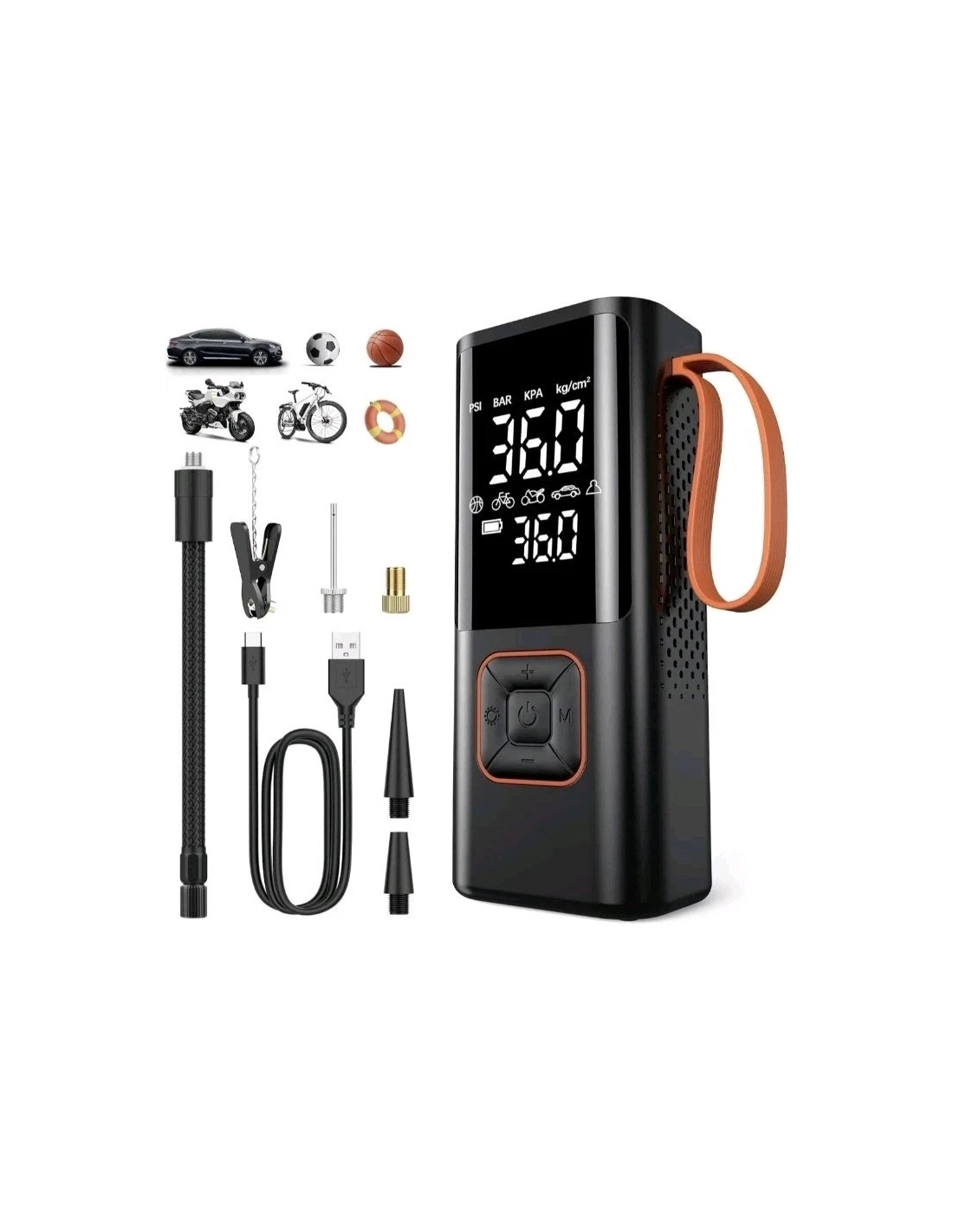 ⚽ Display digitale a doppio schermo, preciso ⚽ La pompa d'aria portatile è dotata di icone in modalità chiara e icone di alimentazione che consentono di configurare facilmente. Inoltre, la funzione di promemoria intermittente quando l'alimentazione è inferiore al 5% può ricordarti di caricare in tempo. Ci vogliono solo 4 ore per caricare completamente, il che è molto veloce.