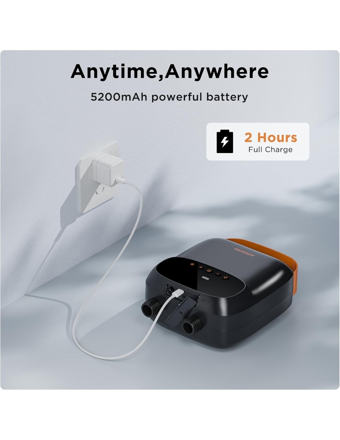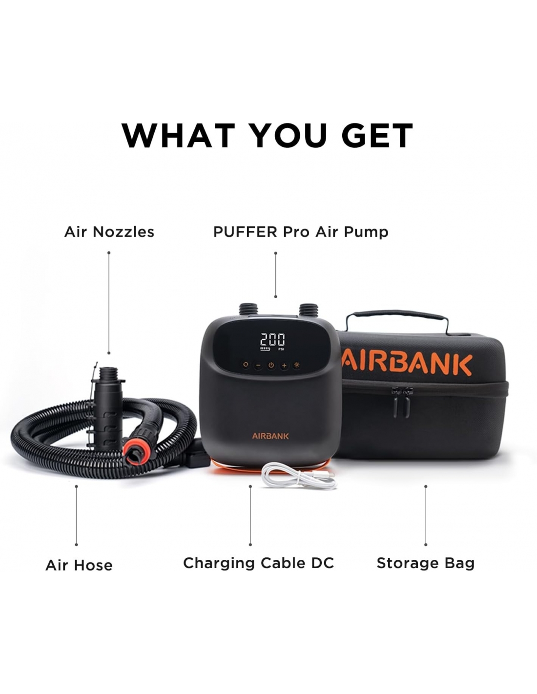 AIRBANK Puffer Pro Pompa ad Aria Elettrica con Batteria , Pompa ad Aria Ricaricabile a Doppio Stadio con Spegnimento Automatico per Paddleboard, Wing Foil e Kite, Tenda, Materasso