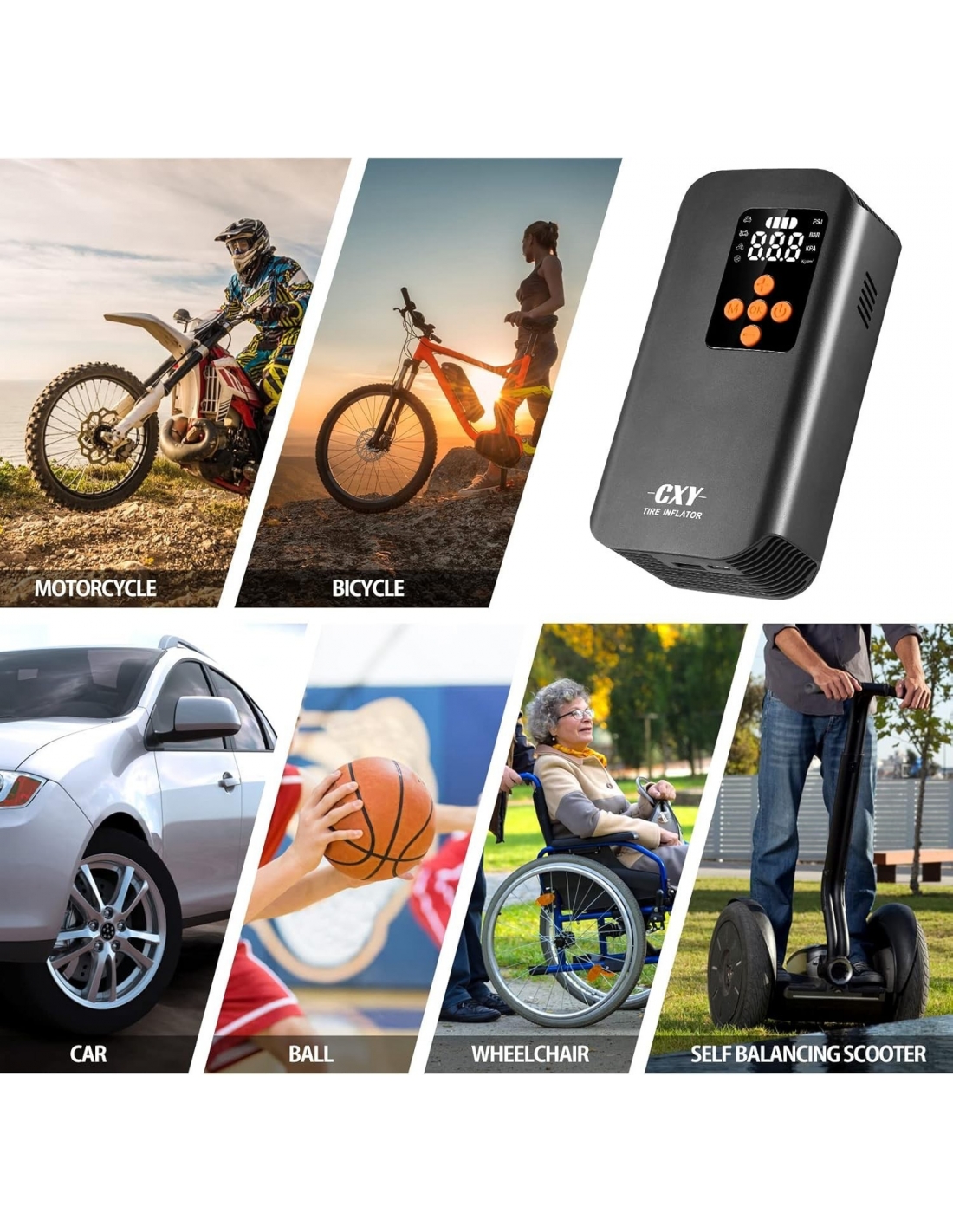 CXY TC17 7500mah Compressore Aria Portatile Auto Pompa Elettrica per Bicicletta, Mini Compressore Pneumatici per Auto Ricaricabilile in 4 Ugelli Diversi per Auto, Moto, Biciclette e Palloni