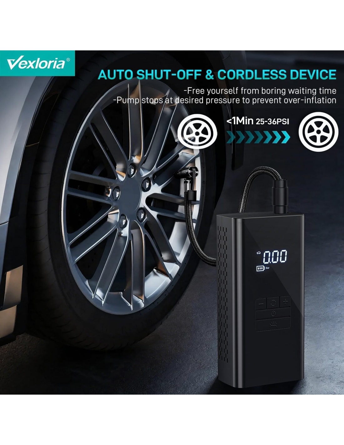 - Gonfiaggio efficiente: la pompa ad aria elettrica dispone di una batteria da 6000 mAh e di un chip ad alte prestazioni per gonfiare rapidamente i pneumatici. Con una pressione massima di 150 PSI e un flusso d'aria di 36 l/min, è ideale per la pompa elettrica della bicicletta e la pompa ad aria. Piccoli pneumatici per auto (25-36 PSI) possono essere gonfiati in soli 1 minuto, risparmiando tempo e fatica.