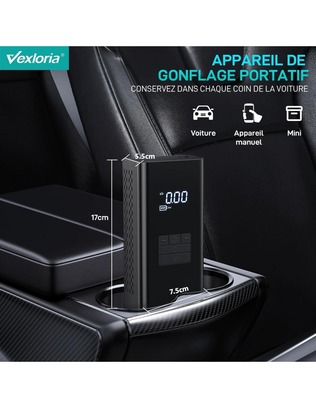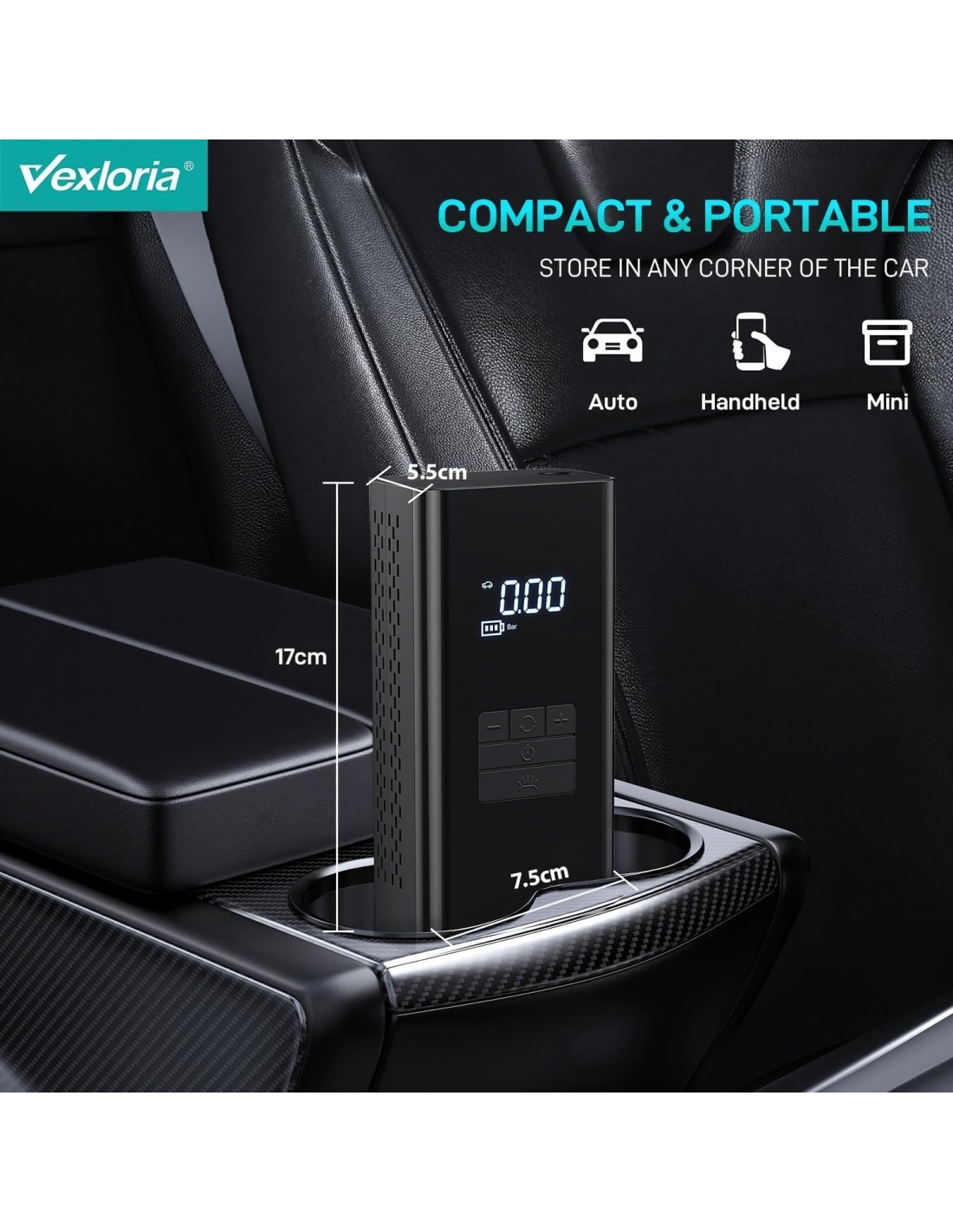 Vexloria JN-058 Compressore Aria Portatile, 6000mAh Mini Compressore Auto e Moto, 150PSI gonfia gomme Auto Portatile con Schermo Digitale e Torcia LED, Adatto a Gomme, Bici e Palla