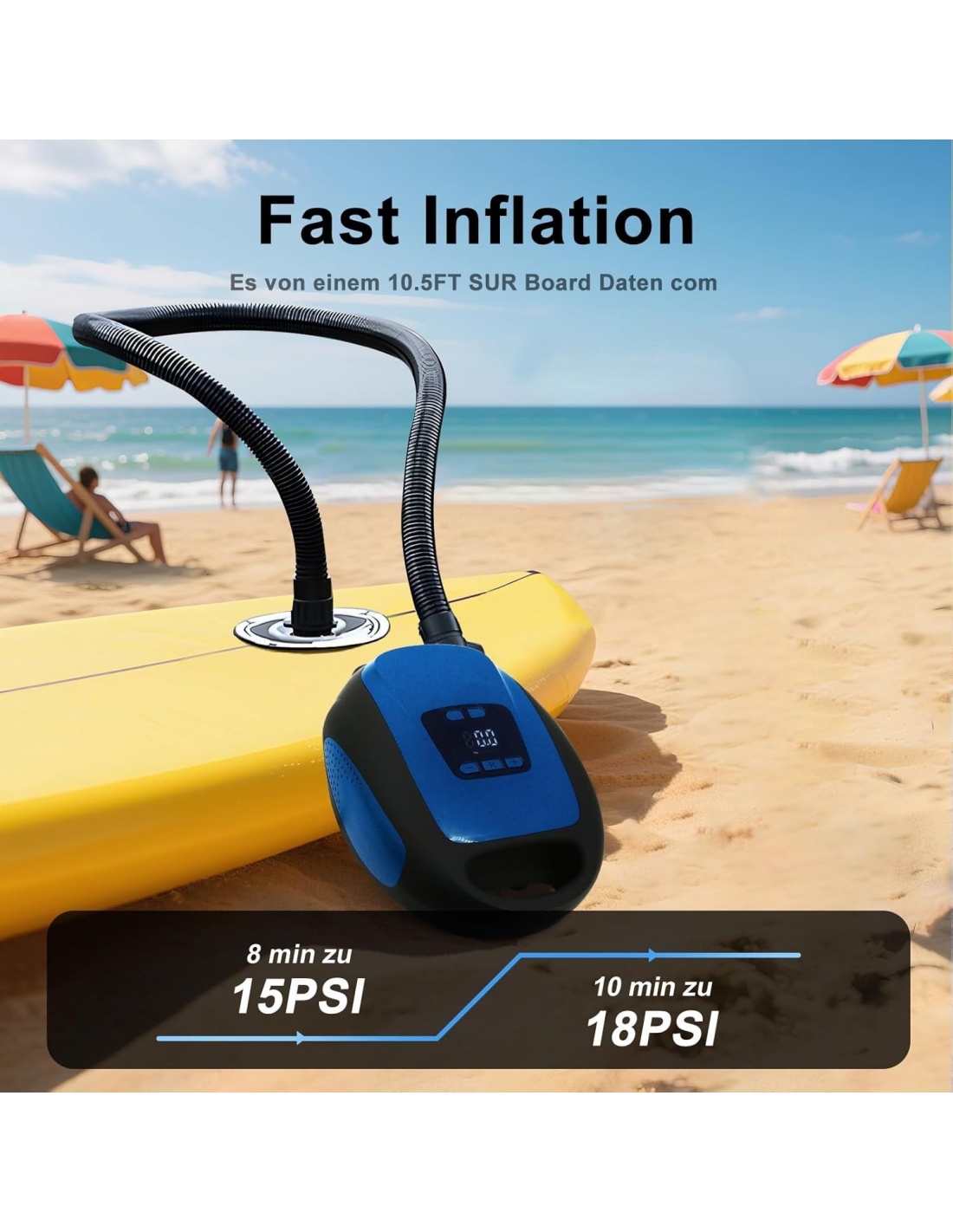 - Pompa Sup regolabile elettrica: la pompa gonfiabile dispone di 3 – 10 PSI (fino a 1,37 bar) regolazione della pressione dell'aria PSI, con unità di pressione selezionabili in PSI, kPa, Bar e KG/CM², in modo da poter regolare la pressione al livello target per evitare un sovrapompaggio. gonfiare la SUP da 10,5 'a 15 PSI o a 18 PSI per 10 minuti entro 8 minuti. Non aspettare più per la pompa lenta