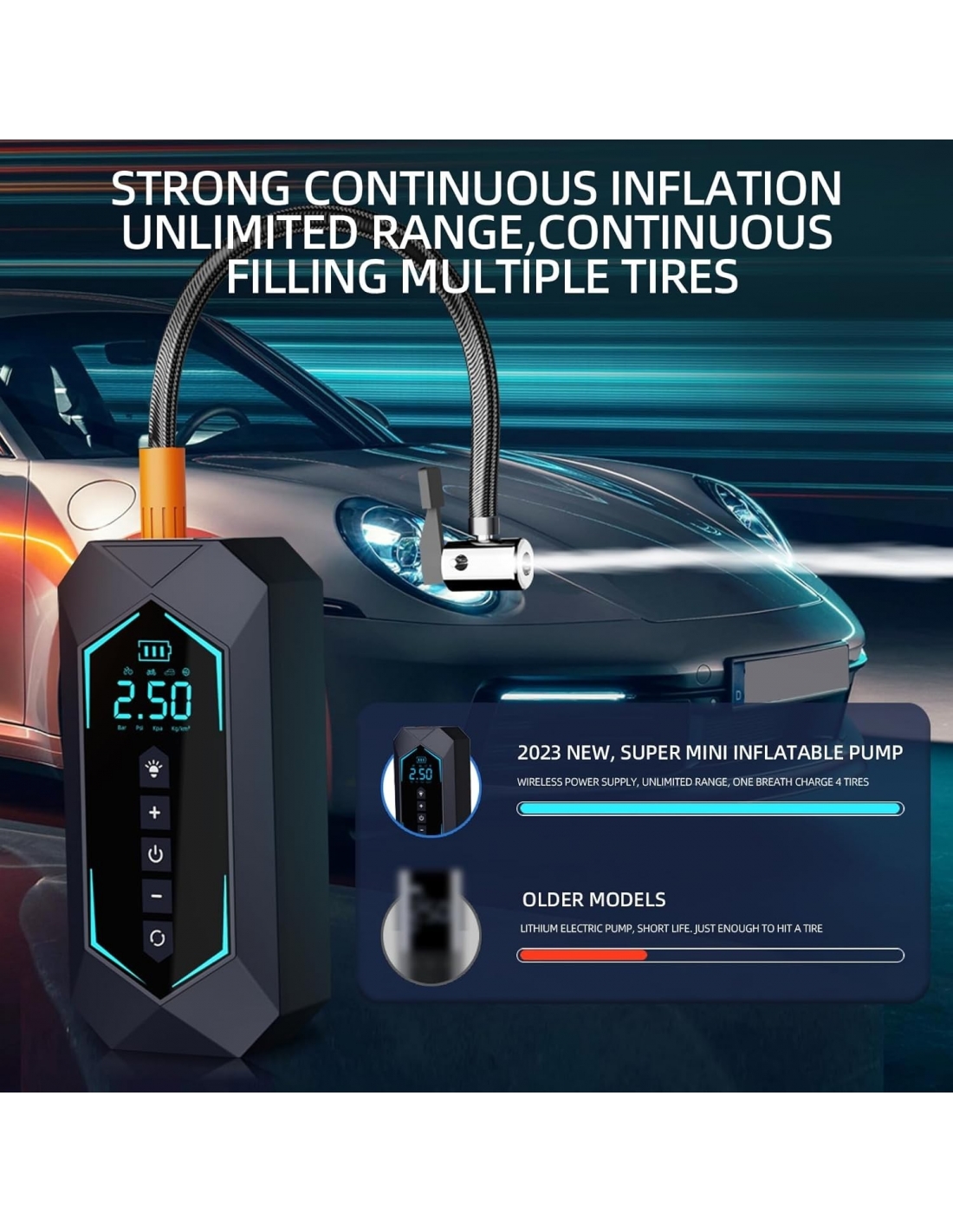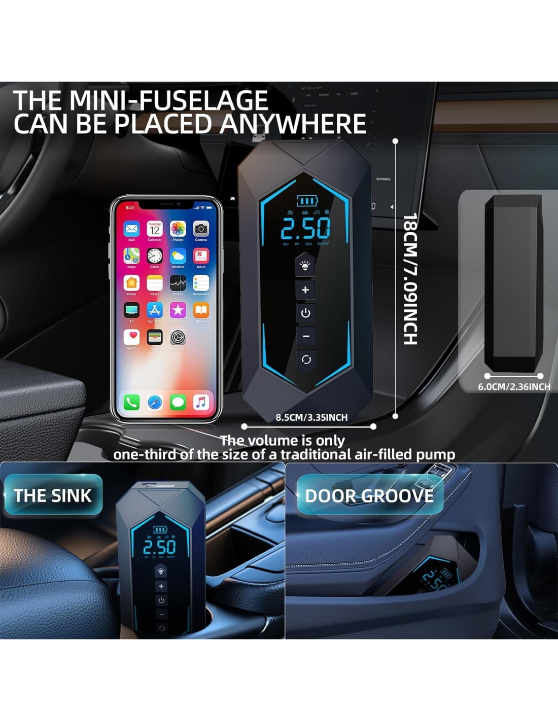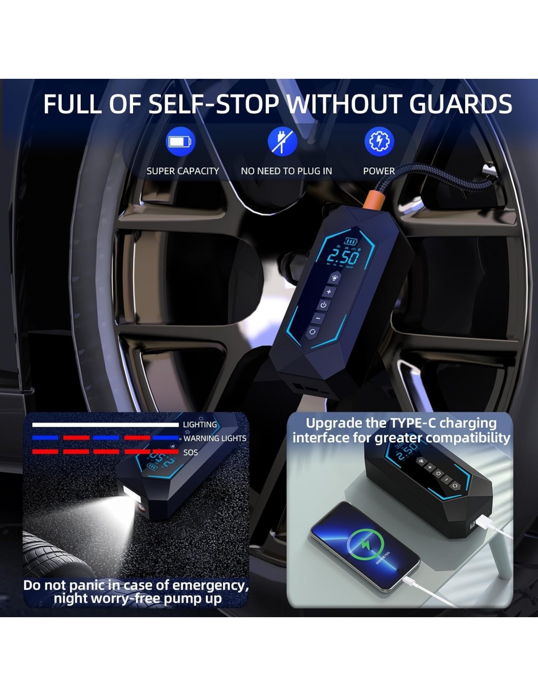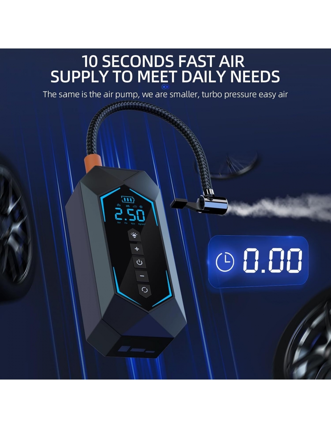 D-Lumina TR602 Compressore d'aria portatile, elettrico 150 PSI 6000 mAh 120 W, mini compressore multimodale con lampada a LED, nuova pompa d'aria portatile per auto/bici/moto/scooter/palla