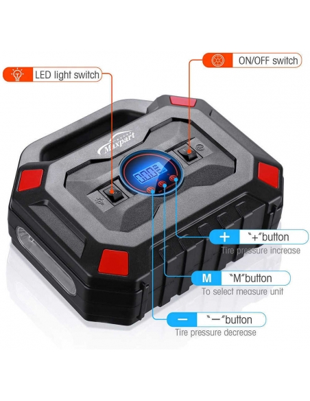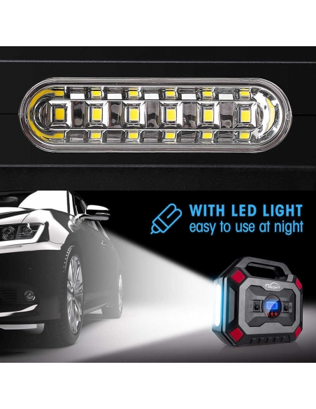 【LED Torcia Elettrica 】 Pneumatico compressore d'aria portatile è dotato di luminoso e di lunga durata HA CONDOTTO le luci, che può gonfiare il pneumatico facilmente e comodamente in ambiente buio.
