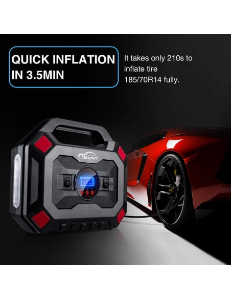 【Faster Gonfiare Speed】Plug il compressore d'aria in 12V presa di corrente, si potrebbe ups a 150 PSI, il nostro compressore d' aria portatile consente di gonfiare un pneumatico da 0 a 35psi sotto 4min, basta capovolgere l' interruttore e il pneumatico di gonfiaggio compressore si fare tutto il lavoro per voi.