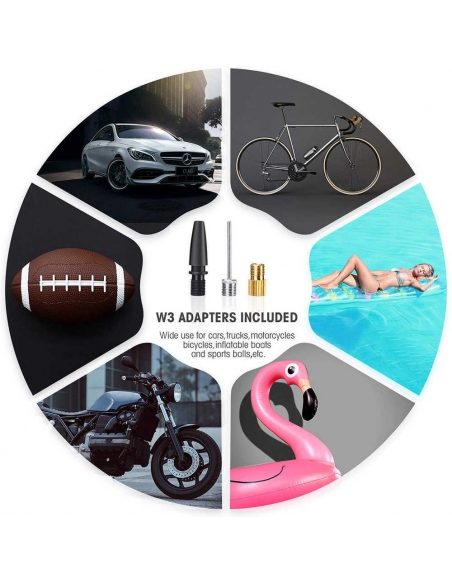 【Multi Ugelli Available】 d'aria Portatile del gonfiatore della gomma fornisce 3 ugelli supplementari permette di gonfiare tutti i pneumatici della vostra auto/SUV/pickup/mountain bike/cuscini gonfiabili/kayak/palle/giocattoli gonfiabili.