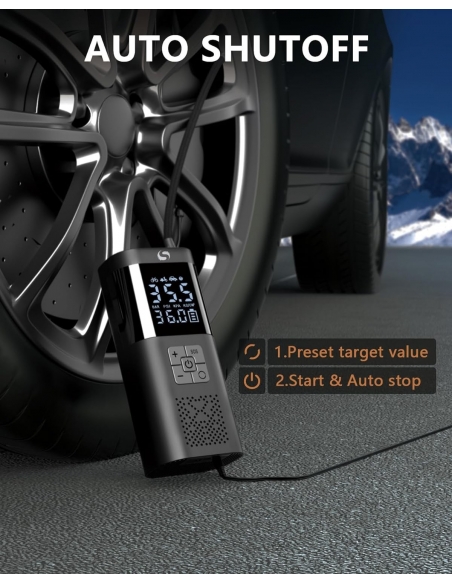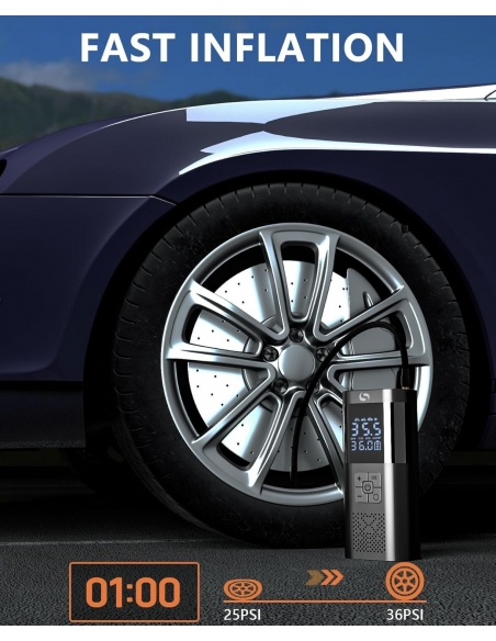 - GONFIAMENTO VELOCE E SICURO: niente più tempi di gonfiaggio lunghi, il compressore aria portatile può caricare un pneumatico auto 195/55/R15 da 0 a 35psi in 5 minuti. Inoltre, è sufficiente impostare la pressione desiderata e il compressore aria portatile auto al raggiungimento della pressione target. Non c'è bisogno di preoccuparsi di gonfiare eccessivamente la gonfiatore elettrico portatile di gonfiaggio!