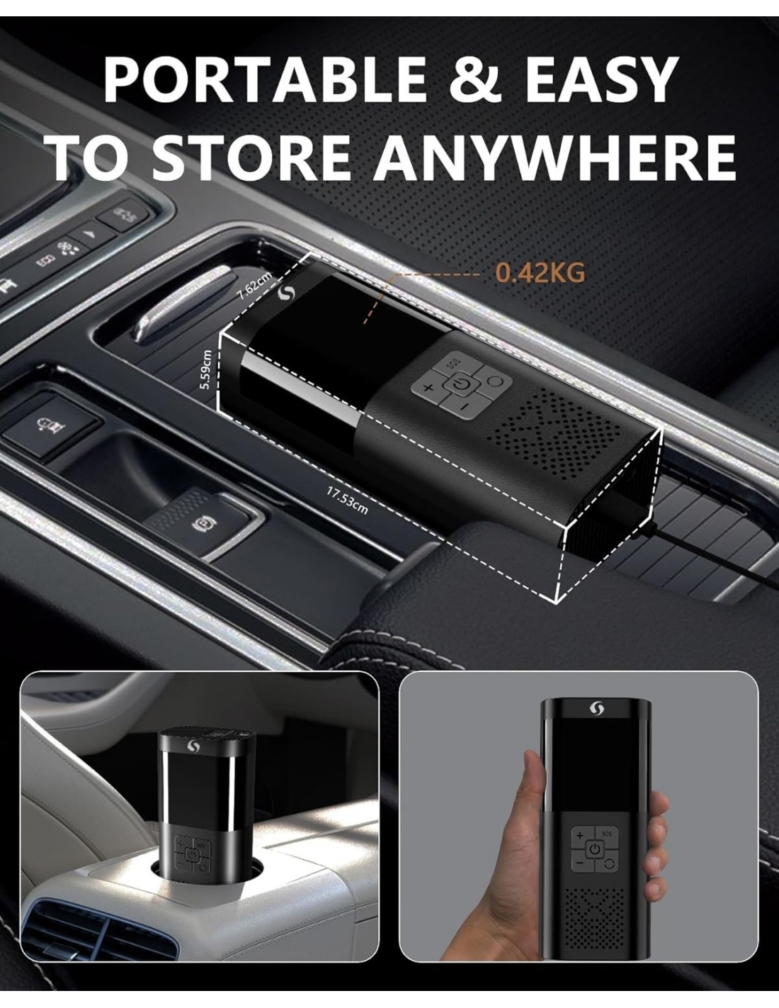 SERVOMASTER SM02 Compressore Aria Portatile, Mini Compressore con Manometro, 150PSI 12V DC Gonfiatore Elettrico Portatile con Luce LED, Accessori Auto per Gli Uomini, Adatto per Auto Moto Bici Palla