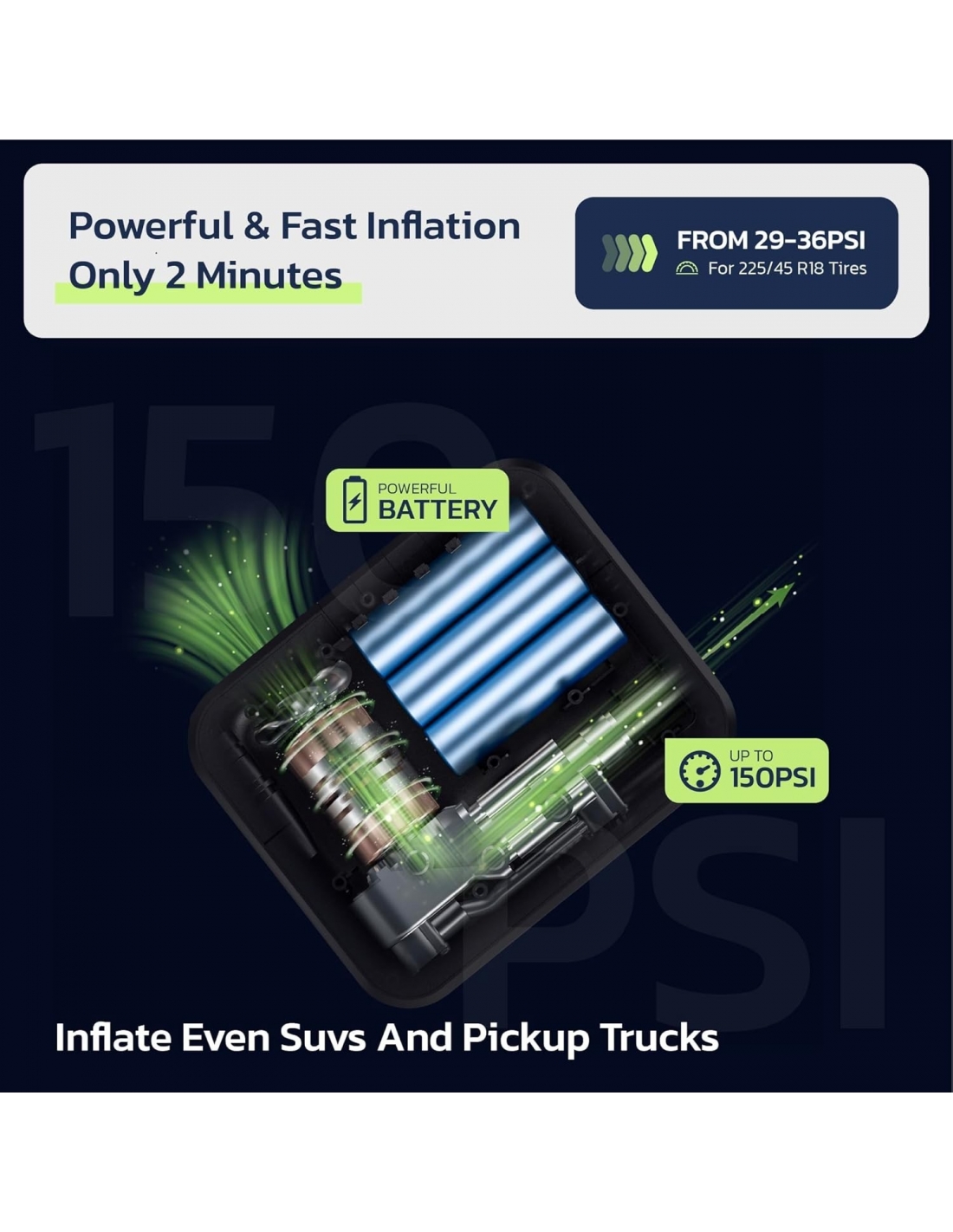 Woowind DP3 Compressore d'aria portatile per pneumatici SUV per fuoristrada - Pompa dell'aria da 150 PSI per pneumatici auto con pulsante di sgonfiaggio, arresto automatico e gonfiaggio rapido