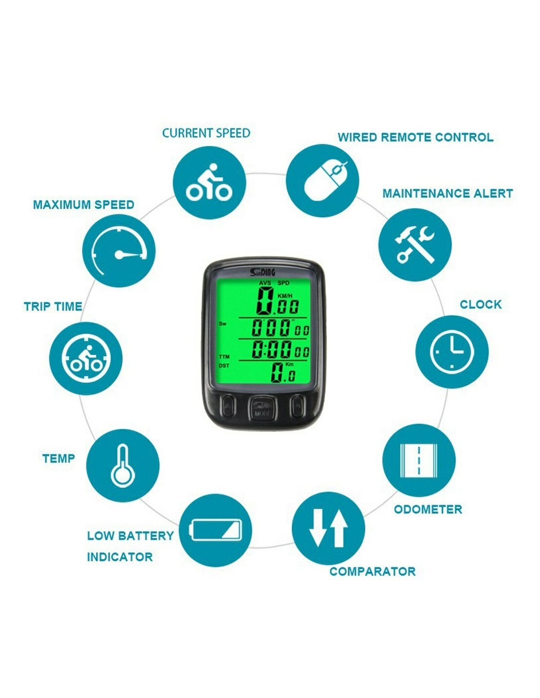 Misuratore velocità digitale bicicletta SUNDING SD-563C Cronometro Impermeabile