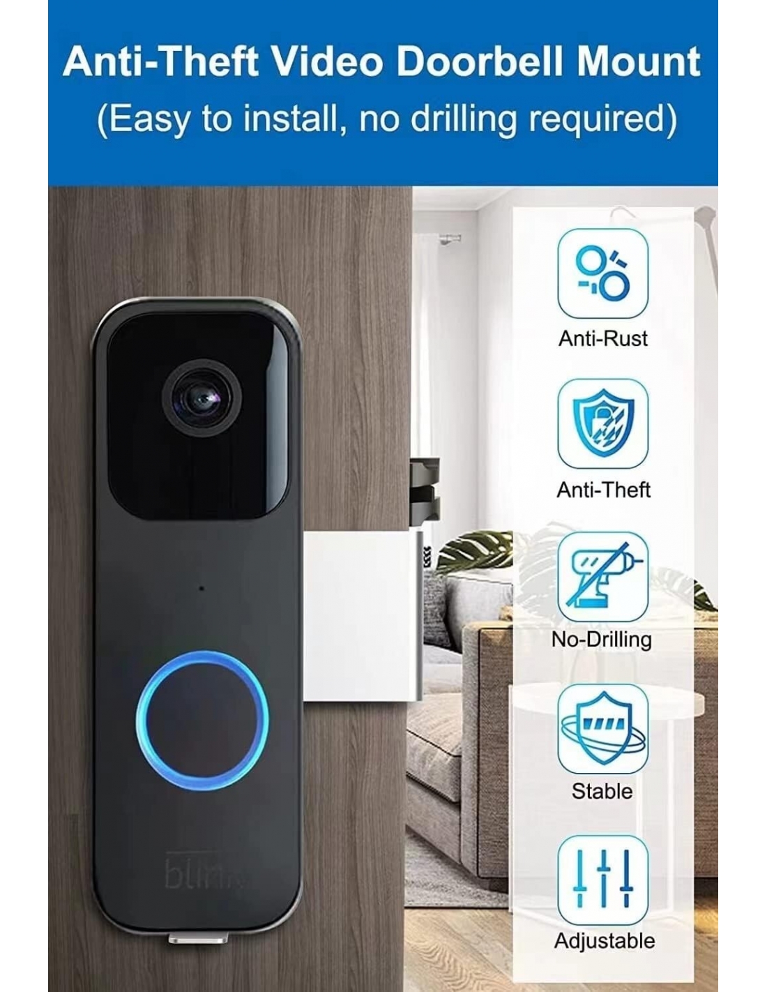 Supporto antifurto per campanello Blink Videocitofono con staffa di montaggio, regolabile, senza trapano, non blocca il sensore di movimento del campanello