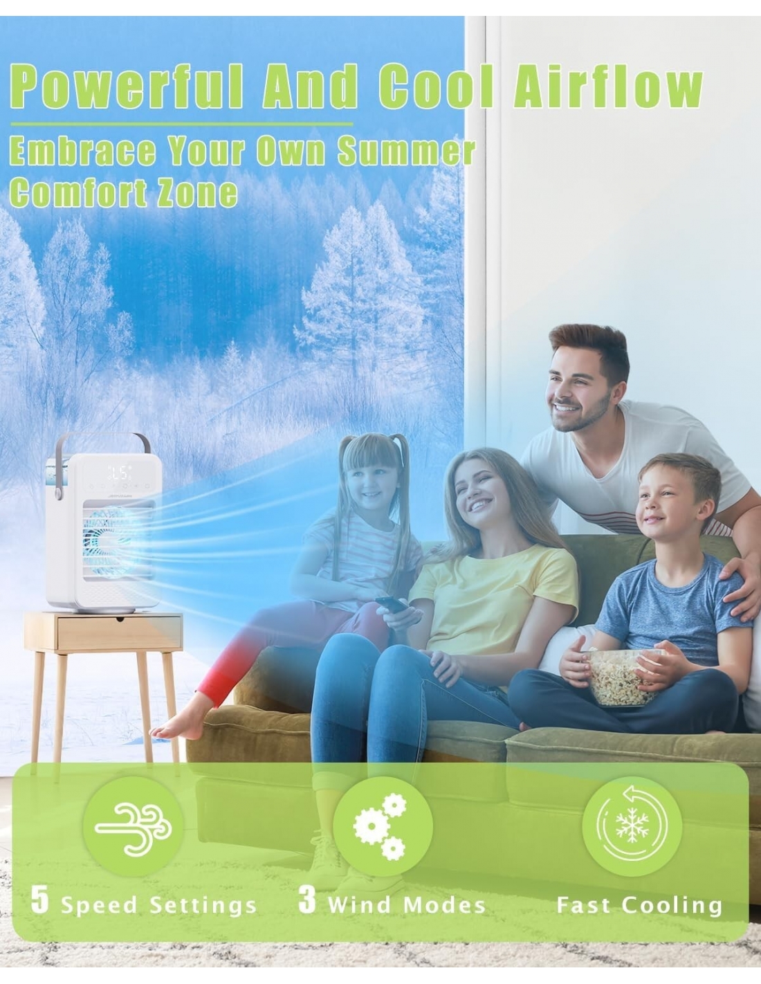 Jervamni Condizionatore Portatile Mini Climatizzatore Silenzioso 5 Velocità 3 Modalità Oscillazione di 90°